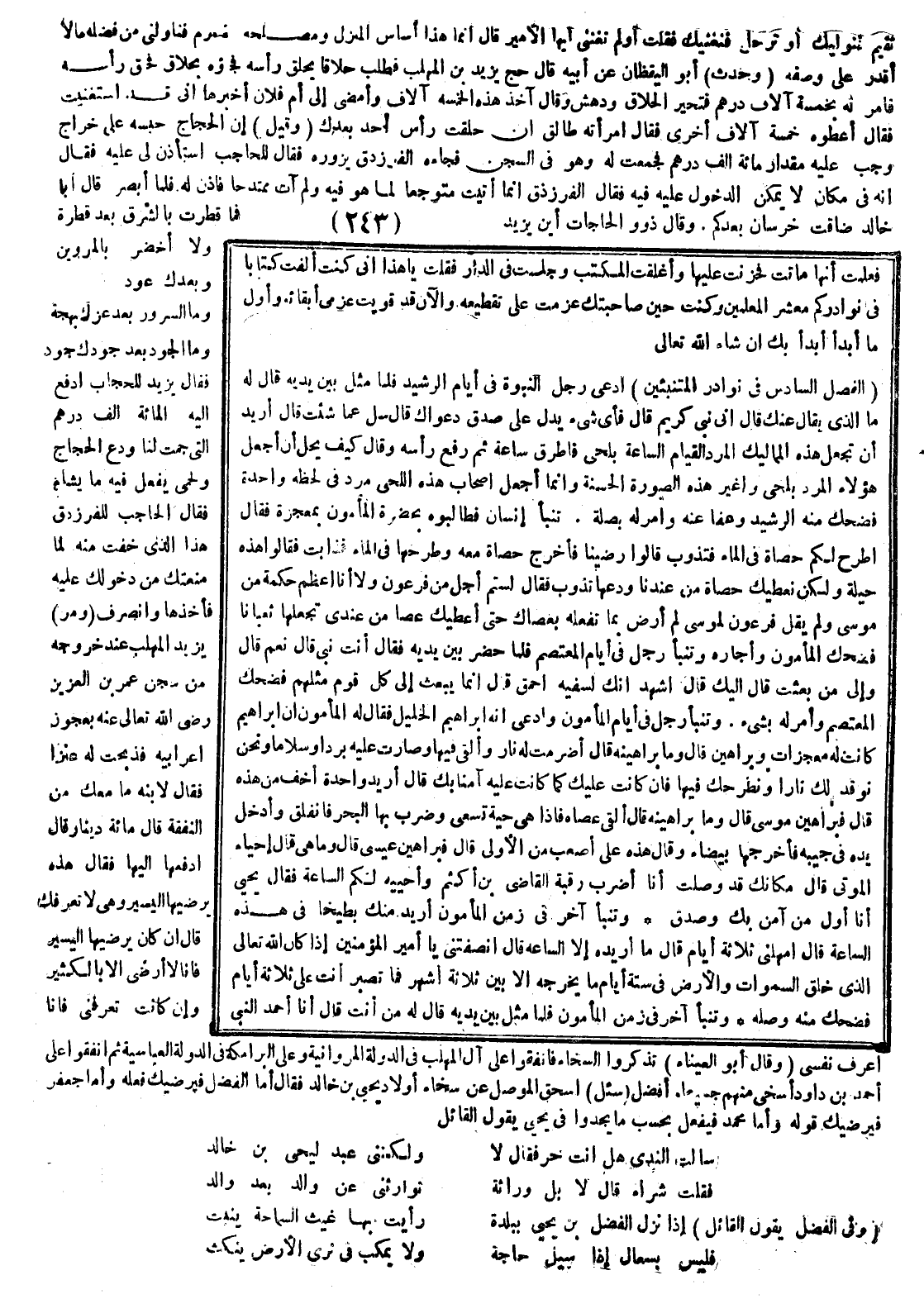 تقيم فنوليك أو ترحل فنغنيك فقلت أو لم تغنني أيها الأمير قال إنما هذا أثاث المنزل ومصلحة القدوم فنالني من فضله ما لا أقدر على وصفه.