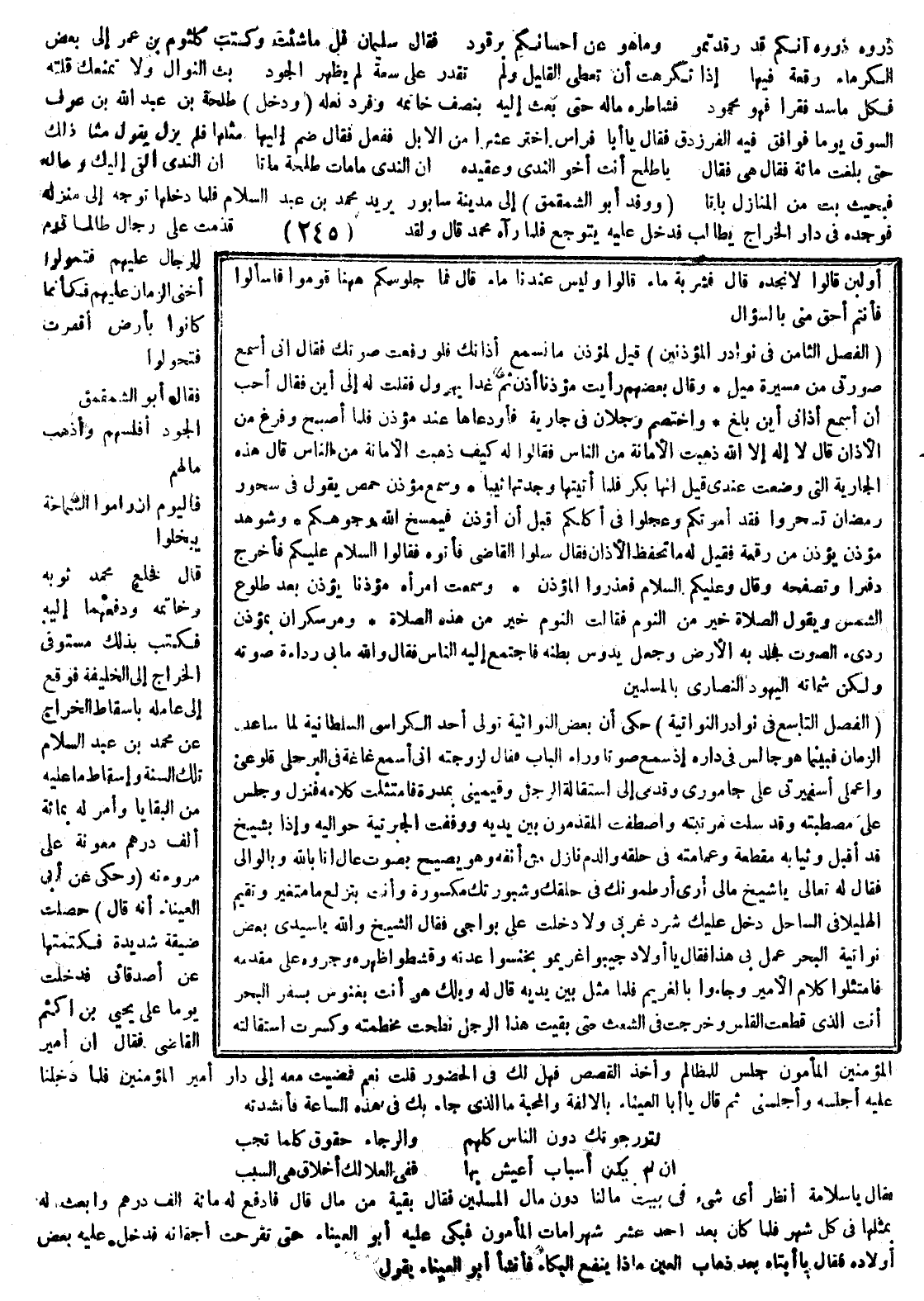 قال فخلع محمد ثوبه وخاتمه ودفعهما إليه فكتب بذلك مستوفي الخراج إلى الخليفة فوقع إلى عامله بإسقاط الخراج عن محمد ابن عبد السلام تلك السنة وإسقاط ما عليه من البقايا وأمر له بمائة ألف درهم معونة على مروءته.