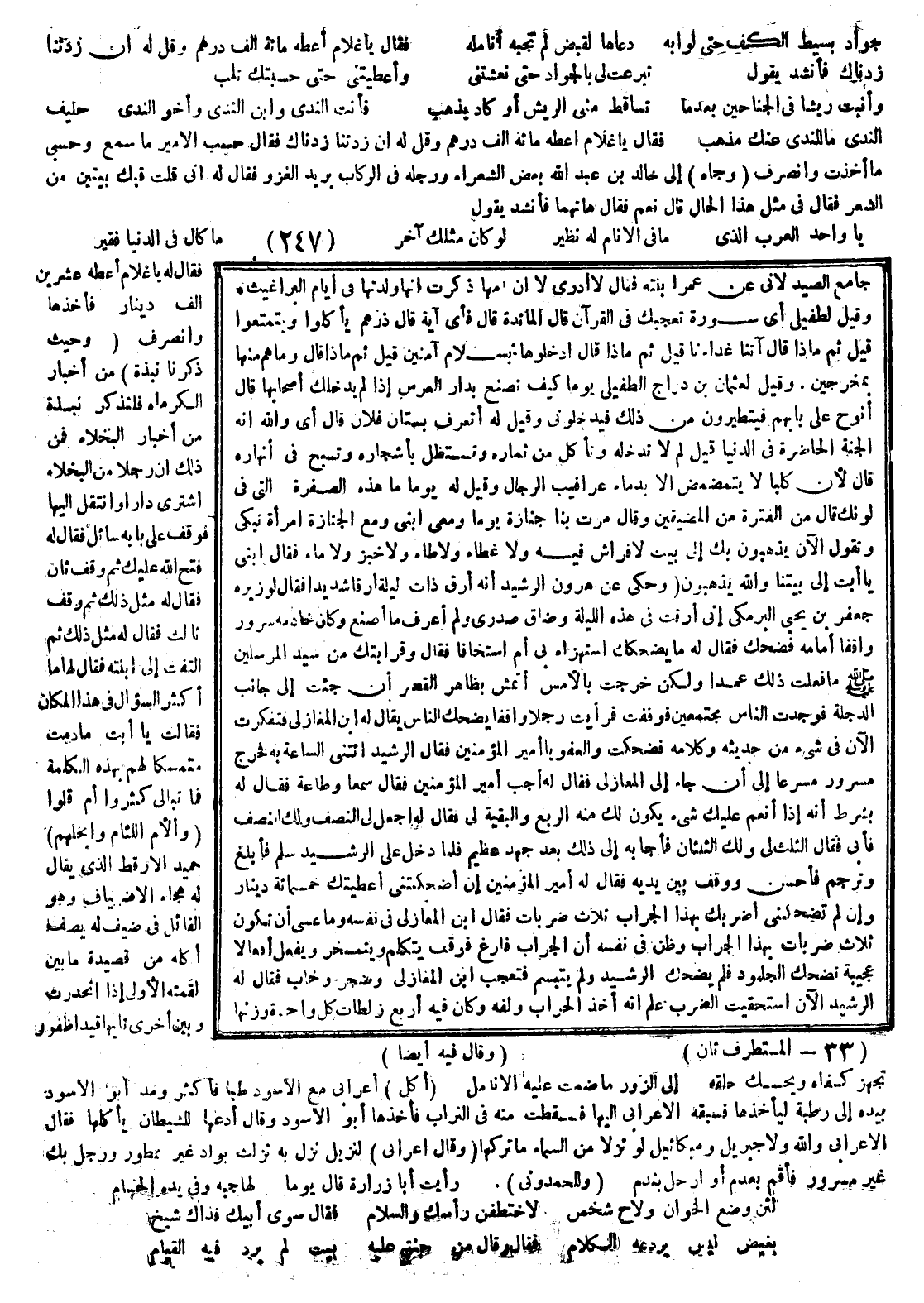 وحيث ذكرنا نبذة من أخبار الكرماء نبذة من أخبار البخلاء فمن ذلك، أن رجلاً من البخلاء اشترى داراً وانتقل إليها فوقف ببابه سائل فقال له فتح الله عليك ثم وقف ثان فقال له مثل ذلك ثم وقف ثالث فقال له مثل ذلك ثم التفت إلى ابنته فقال لها ما أكثر السؤال في هذا المكان فقالت يا أبت ما دمت متمسكاً لهم بهذه الكلمة فما تبالي كثروا أم قلوا.