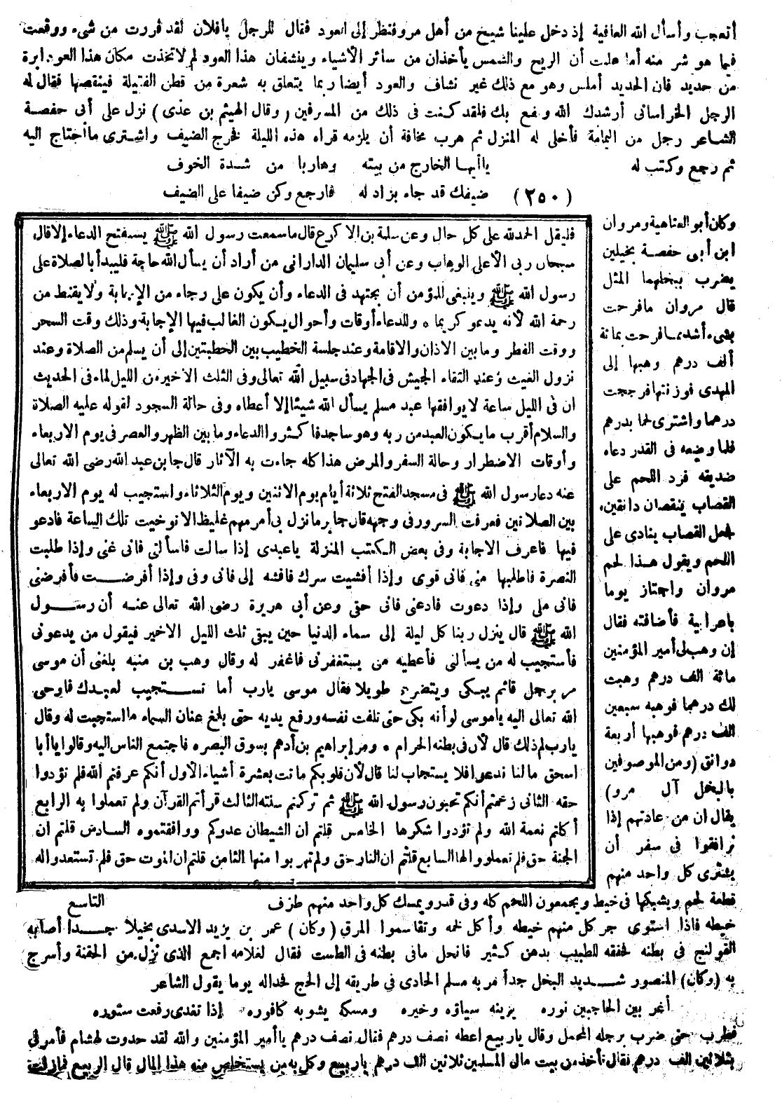وكان المنصور شديد البخل جداً مر به مسلم الحادي في طريقه إلى الحج فحدا له يوماً بقول الشاعر:
