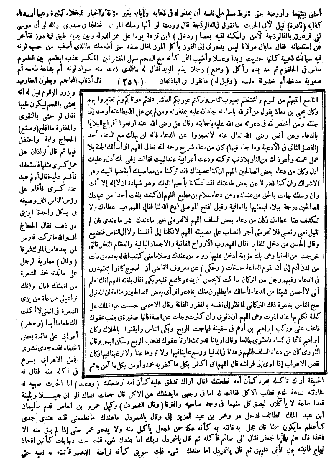 وقيل له ما تقول في الباذنجان قال أذناب المحاجم وبطون العقارب وبزور الزقوم قيل له أنه يحشى باللحم فيكون طيباً فقال لو حشي بالتقوى والمغفرة ما أفلح.