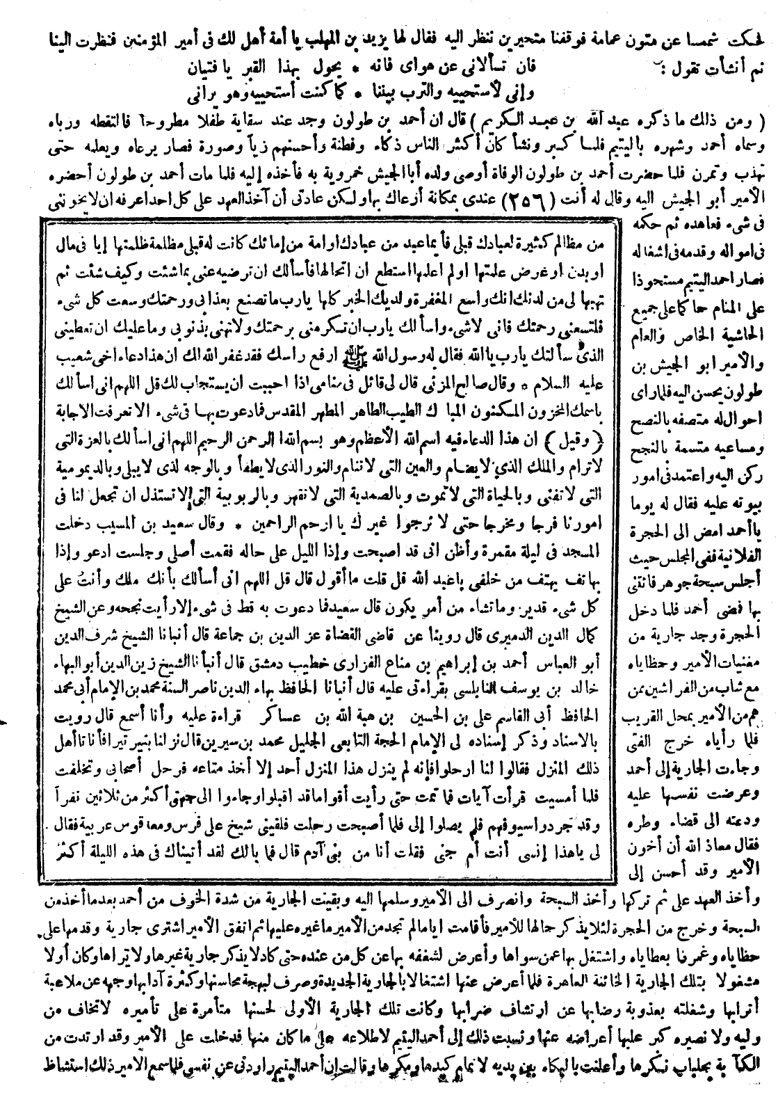 ومن ذلك ما ذكره عبد الله بن عبد الكريم قال: أن أحمد بن طولون وجد عند سقاية طفلاً مطروحاً فالتقطه ورباه وسماه أحمد وشهره باليتيم فلما كبر ونشأ كان أكثر الناس ذكاء وفطنة وأحسنهم زيا وصورة فصار يرعاه ويعلمه حتى تهذب وتمرن فلما حضرت أحمد بن طولون الوفاة أوصى ولده أبا الجيش خمرويه به فأخذه إليه فلما مات أحمد بن طولون أحضره الأمير أبو الجيش إليه وقال له أنت عندي بمكانة أرعاك بها ولكن عادتي أني آخذ العهد على كل أحد أعرفه أن لايخونني في شيء فعاهده ثم حكمه في أمواله وقدمه في أشغاله فصار أحمد اليتيم مستحوذاً على المقام حاكماً على جميع الحاشية الخاص والعام والأمير أبو الجيش بن طولون يحسن إليه فلما رأى أحواله متصفة بالنصح ومساعيه متسمة بالنجح ركن إليه واعتمد في أمور بيوته عليه فقال له يوماً يا أحمد أمض إلى الحجرة الفلانية ففي المجلس حيث أجلس سبحة جوهر فائتني بها فمضى أحمد فلما دخل الحجرة وجد جارية من مغنيات الأمير وحظاياه مع شاب من الفراشين ممن هم من الأمير بمحل قريب فلما رأياه خرج الفتى وجاءت الجارية إلى أحمد وعرضت نفسها عليه ودعته إلى قضاء وطره فقال معاذ الله أن أخون الأمير وقد أحسن إليَّ وأخذ العهد عليَّ ثم تركها وأخذ السبحة وأنصرف إلى الأمير وسلمها إليه وبقيت الجارية شديدة الخوف من أحمد بعدما أخذ السبحة وخرج من الحجرة لئلا يذكر حالها للأمير فأقامت أياما لم تجد من الأمير ما غيره عليها ثم أتفق أن الأمير اشترى جارية وقدمها على حظاياه وغمرها بعطاياه واشتغل بها عمن سواها وأعرض لشغفه بها عن كل من عنده حتى كاد لا يذكر جارية غيرها ولا يراها وكان أولا مشغولاً بتلك الجارية الخائنة العاهرة فلما أعرض عنها اشتغالاً بالجارية الجديدة وصرف لبهجة محاسنها وكثرة أدابها وجهه عن ملاعبة أترابها وشغلته بعذوبة رضابها عن ارتشاف رضاب أضرابها وكانت تلك الجارية الأولى لحسنها متآمرة على تأميره لا تخاف من وليه ولا نصيره كبر عليها أعراضه عنها ونسبت ذلك إلى أحمد اليتيم لاطلاعه على ما كان منها فدخلت على الأمير وقد ارتدت من الكآبة بجلباب نكرها وأعلنت بين يديه لاتمام كيدها وقالت أن أحمد اليتيم راودني عن نفسي فلما سمع الأمير ذلك استشاط