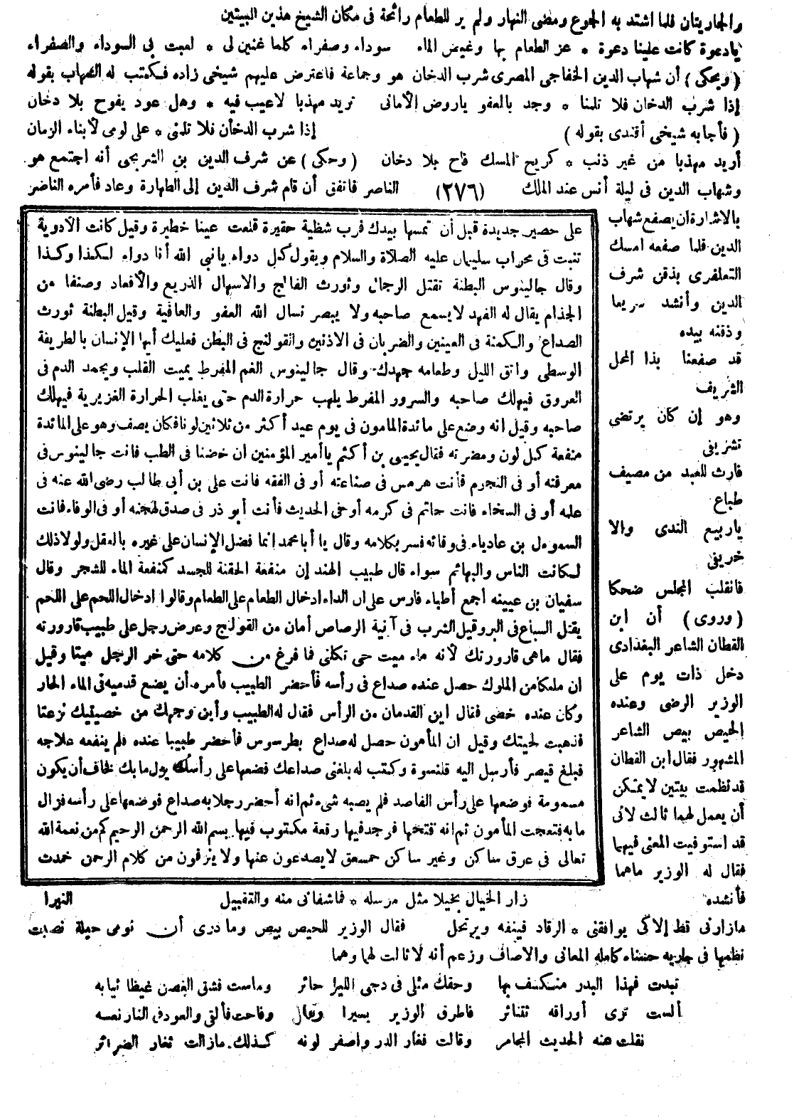 والجاريتان فلما اشتد به الجوع ومضى النهار ولم ير للطعام رائحة كتب في مكان الشيخ هذين البيتين: