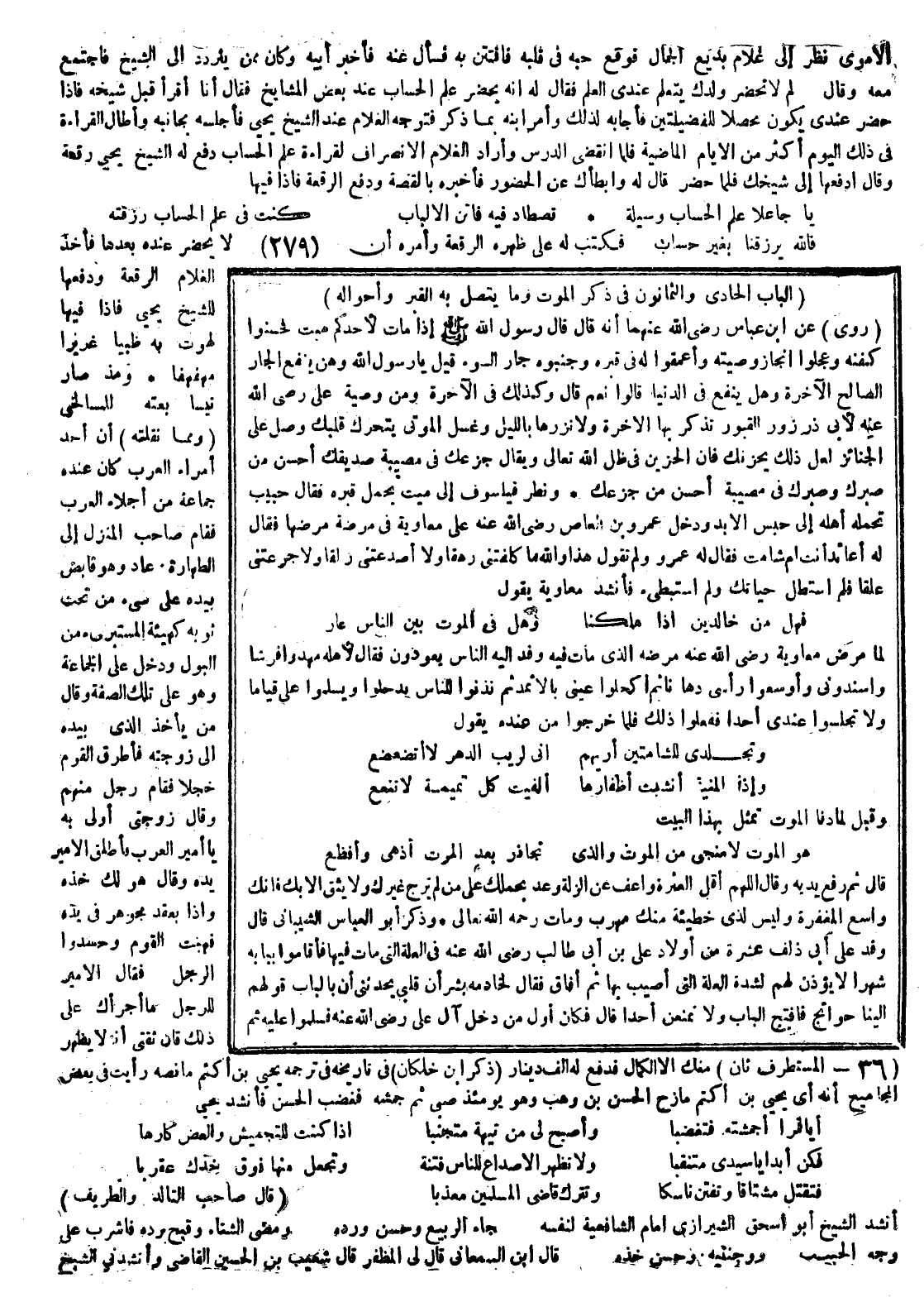 ومما نقلته أن أحد أمراء العرب كان عنده جماعة من أجلاَّء العرب فقام صاحب المنزل إلى الطهارة وعاد وهو قابض بيده على شيء من تحت ثوبه كهيئة المستبرىء من البول ودخل على الجماعة وهو على تلك الصفة قال من يأخذ الذي بيدي إلى زوجته فأطرق القوم خجلاً فقام رجل منهم وقال زوجتي أولى به يا أمير العرب فأطلق الأمير يديه وقال هو لك خذه وإذا بعقد مجوهر في يده فبهت القوم وحسدوا الرجل فقال الأمير للرجل ما أجرأك على ذلك قال ثقتي أنه لا يظهر منك إلا الكمال فدفع له ألف دينار.