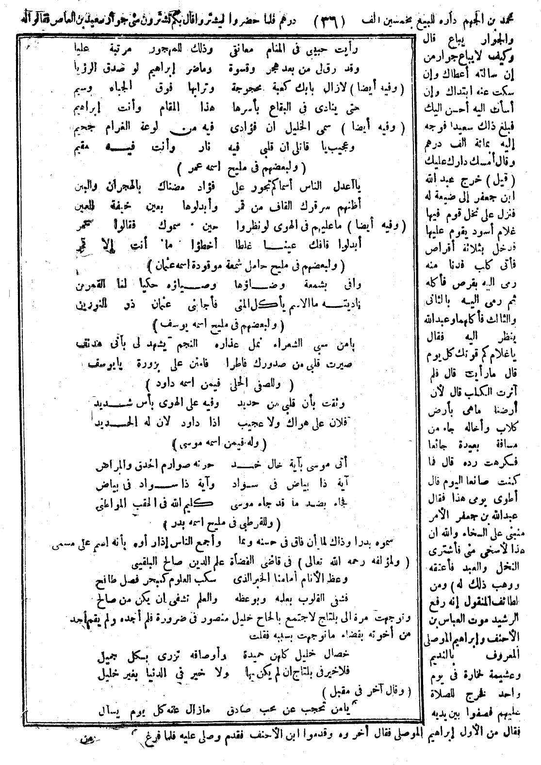 ومن لطائف المنقول أنه رفع للرشيد موت العباس بن الأحنف وإبراهيم الموصلي المعروف بالنديم وعشيمة الخمارة في يوم واحد فخرج للصلاة عليهم فصفوا بين يديه فقال من الأول فقالوا إبراهيم الموصلي فقال أخروه وقدموا العباس بن الأحنف فقدم وصلى عليه فلما فرغ