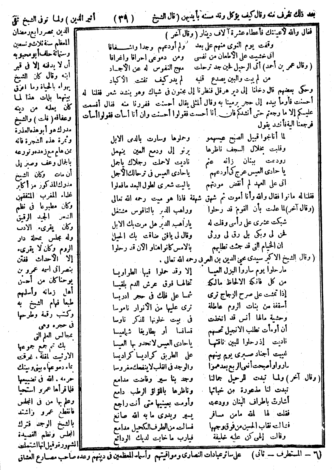 فلما قرأها عمرو استحيا وعلم بها من في المجلس فانقطع عمرو واشتد بالشيخ الوجد فترك المجلس وتظم القصيدة المشهورة قيل أنها اشتملت على سائر عبادات النصارى ومواقيتهم وأسماء المعظمين في دينهم وعده صاحب مصارع العشاق