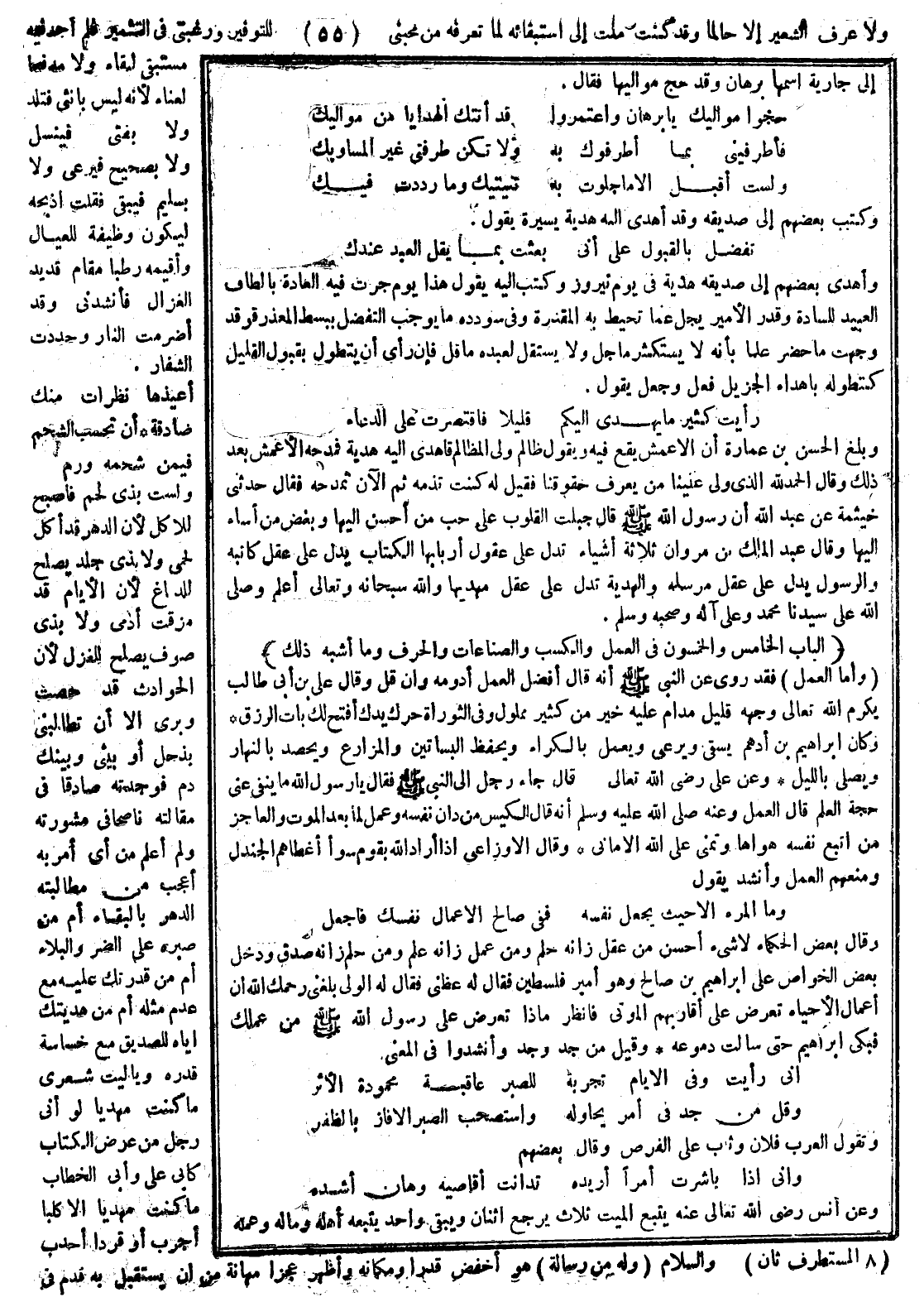 ولست بذي لحم فاصلح للأكل لأن الدهر قد أكل لحمي ولا بذي جلد يصلح للدباغ لأن الأيام قد مزقت أدمي ولا بذي صوف يصلح للغزل لأن الحوادث قد حصت وبري إلا أن تطالبني بذحل أو بيني وبينك دم فوجدته صادقا في مقالته ناصحا في مشورته ولم أعلم من أيّ أمر به أعجب أمن مطالبته الدهر بالبقاء أم من قدرتك عليه مع عدم مثله أم من هديتك غياه للصديق مع خساسة قدره ويا ليت شعري ما كنت مهدياً لو أني رجل من عرض الكتاب كأبي علي وأبي الخطاب ما كنت مهديا إلا كلبا أجرب أو قردا أحدب والسلام.