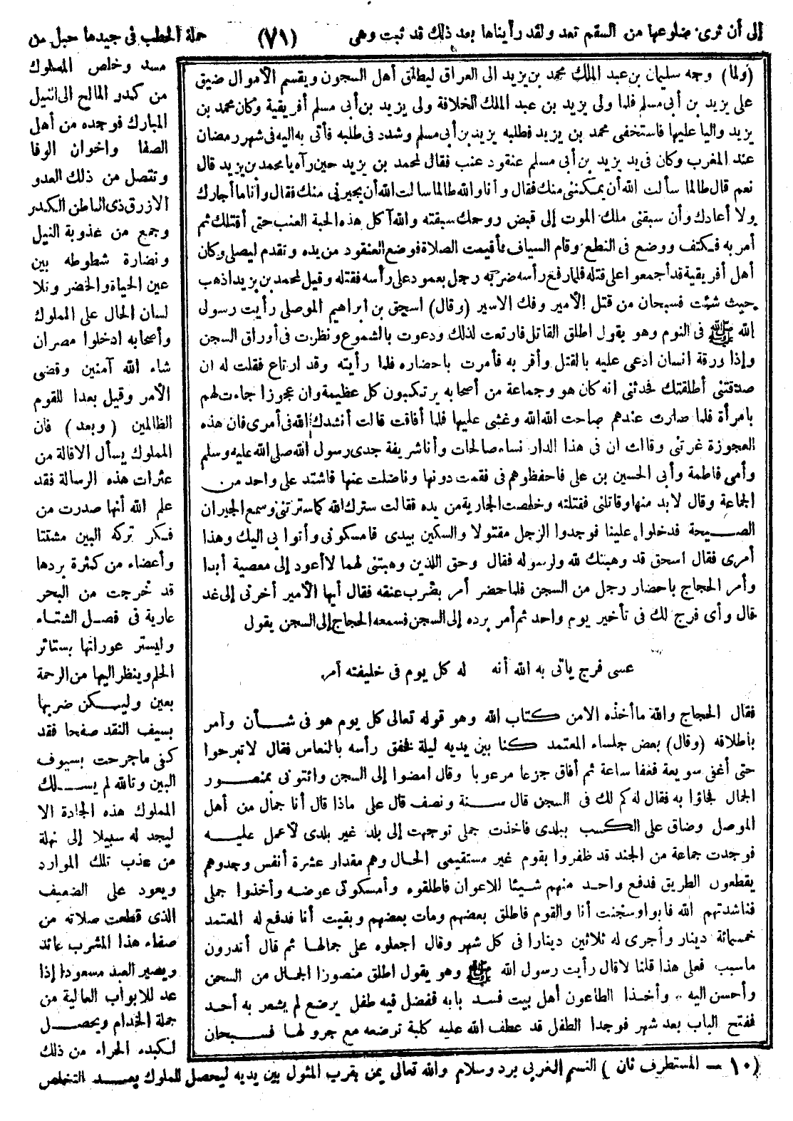 إلى أن ترى ضلوعها من السقم تعد، ولقد رأيناها بعد ذلك قد تبت وهي حمالة الحطب في جيدها حبل من مسد، وخلص المملوك من كدر المالح إلى النيل المبارك فوجده من أهل الصفا وإخوان الوفا، وتنصّل من ذلك العدو الأزرق ذي الباطن الكدر، وجمع من عذوبة النيل ونضارة شطوطه بين عين الحياة والخصر، وتلا لسان الحال على المملوك وأصحابه أدخلوا مصر إن شاء الله آمنين وقضي الأمر، وقيل بعداً للقوم الظالمين.