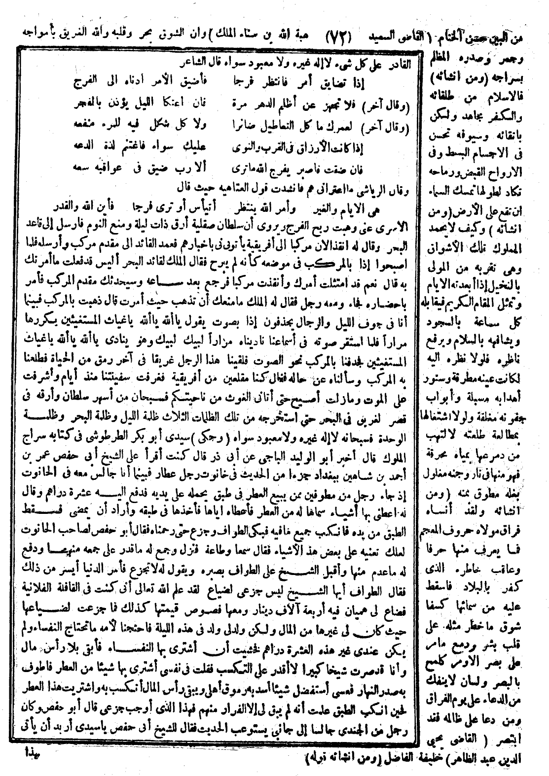 القاضي السعيد هبة الله بن سناء الملك وإن الشوق بحر وقلبه والله لغريقٌ بأمواجه وجمرَّ صدره المظلم بسراجه.