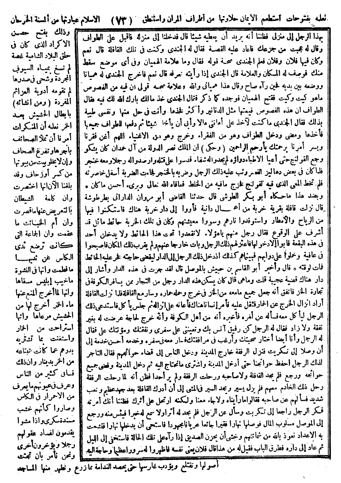 نعلمه بفتوحات استطعم الإيمان حلاوتها من أطراف المران، واستنطق الإسلام عبارتها من ألسنة الخرسان، وذلك بفتح حصن الأكراد الذي كان في خلق البلاد الشامية غصة لم تسغ بمياه السيوف المجردة، وشجى في صدرها لم تقوّمه أدوية العزائم المفردة.