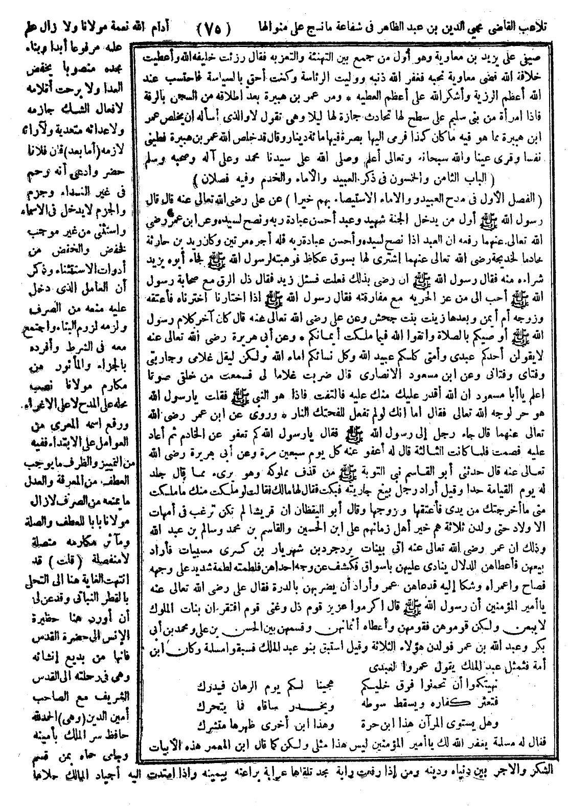 تلاعب القاضي محي الدين بن عبد الظاهر في شفاعة ما نسج على منوالها وهي أدام الله نعمة مولانا ولا زال عَلَمُ علمه مرفوعاً أبداً، وبناء مجده منصوبا بخفض العدا، ولا برحت أقلامه لأفعاله الشك جازمة، ولأعدائه متعدية، ولآرائه لازمة.