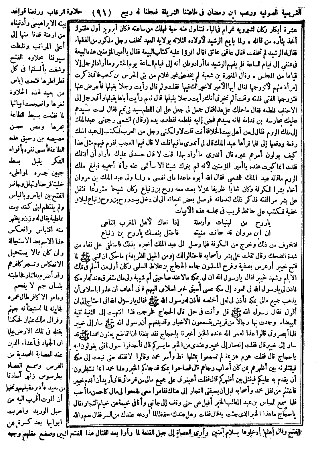 الشريعة الصوفية، ورغب ابن رمضان في طاعتنا الشريفة فجعلنا له في ربيع حلاوة الرغائب، ورفعنا قواعد بيته الإبراهيمي وأدنيناه من أرمنة فدنا منها إلى أعلى المراتب، وتلمظت سيوفنا بحلاوة الفتح ورشفت بالسنتها في كل قطر قطرها، ففتحت اياس من بعيد لهذه الحلاوة ثغرها، وانسجمت أبياتها لما نظمت على بسيط الطاعة بحرها، ومص حصن مصيصه من رحيق هذه الطاعة فأمسى ثغره بأفواه الشكر يقبل، وبسط جبين جسره لمواطىء خيلنا فرحة وتهلل، وجانس الفتح بين اياس وبانياس، ولم ينتظم لبني كندبيت بملطية يقام له وزن ويظهر عنه إقتباس، وإنعكس هذا الأسم بعد الاستحالة ون كان مما لا يستحيل بالانعكاس، ويستجر كافرهم وقد أضرم به النار فخاطبته بلسان جمّ لا يفجم: