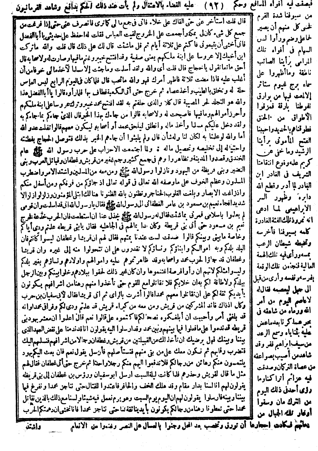 فبصقت فيه أفواه المدافع، وحكم عليه القضاء باعتقال ولم يأت عند ذلك الحكم بدافع، وشاهد القرمانيون من سيوفنا شدة القرن فخشي كل منهم أن يصير لحماً على وضم، ورأوا ألسن السهام في أفواه تلك المرامي برأينا الصائب ناطقة، فمزقوا الأصواق من الحنق فطوقناهم بالحديد، وأحبينا الفتح المأموني برأينا الرشيد، وما خفي عن كريم علمه وقوع انتقامنا الشريف في الغادر ابن الغادر لما أدبر وقطع الله دابره، وظهور السر الإبراهيمي لما أدعى أنه نمروذ تلك الفئة الغادرة؛ كلمه بسيوفنا فأخرسه وتخبطه شيطان الرعب بمسّه ورأى فيه تلك الهمة العالية فنجا من تلك الوقعة بفرسه ونفسه، وأوى من قبل إلى جبل ليعصمه فقال له لا عاصم اليوم من أمر الله، ورماه من شاهقة في بحر عساكرنا بعد ما عض عليه بثناياه، وسمع الرعد من سيف إبراهيم ففر وقد شاهد من أصيب بصواعقه من عصاة التركمان وصدقت فيه عزائم أتراكنا وما رؤي أحد في ذلك اليومن من الترك مان وسقوا أوعار تلك الجبال من دمائهم فكادت أحجارها أن تروق وتخصب بعد المحل، وجنوا بالعسال على النصر وغنموا من الأنعام
