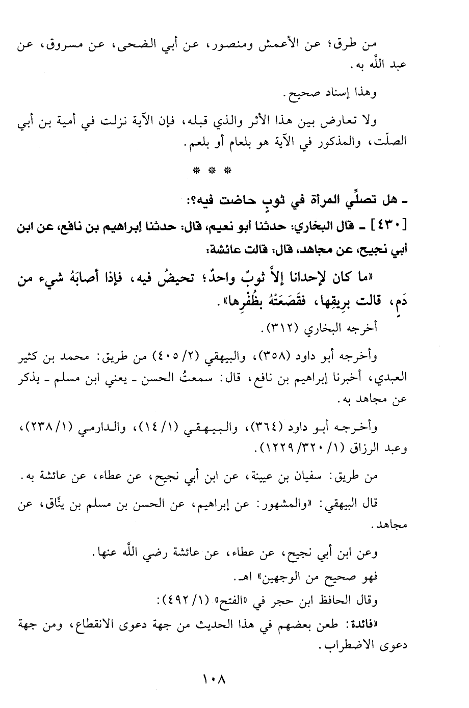 [430] قال البخاري: حدثنا أبو نعيم، قال: حدثنا إبراهيم بن نافع، عن ابن أبي نجيح، عن مجاهد، قال: قالت عائشة: