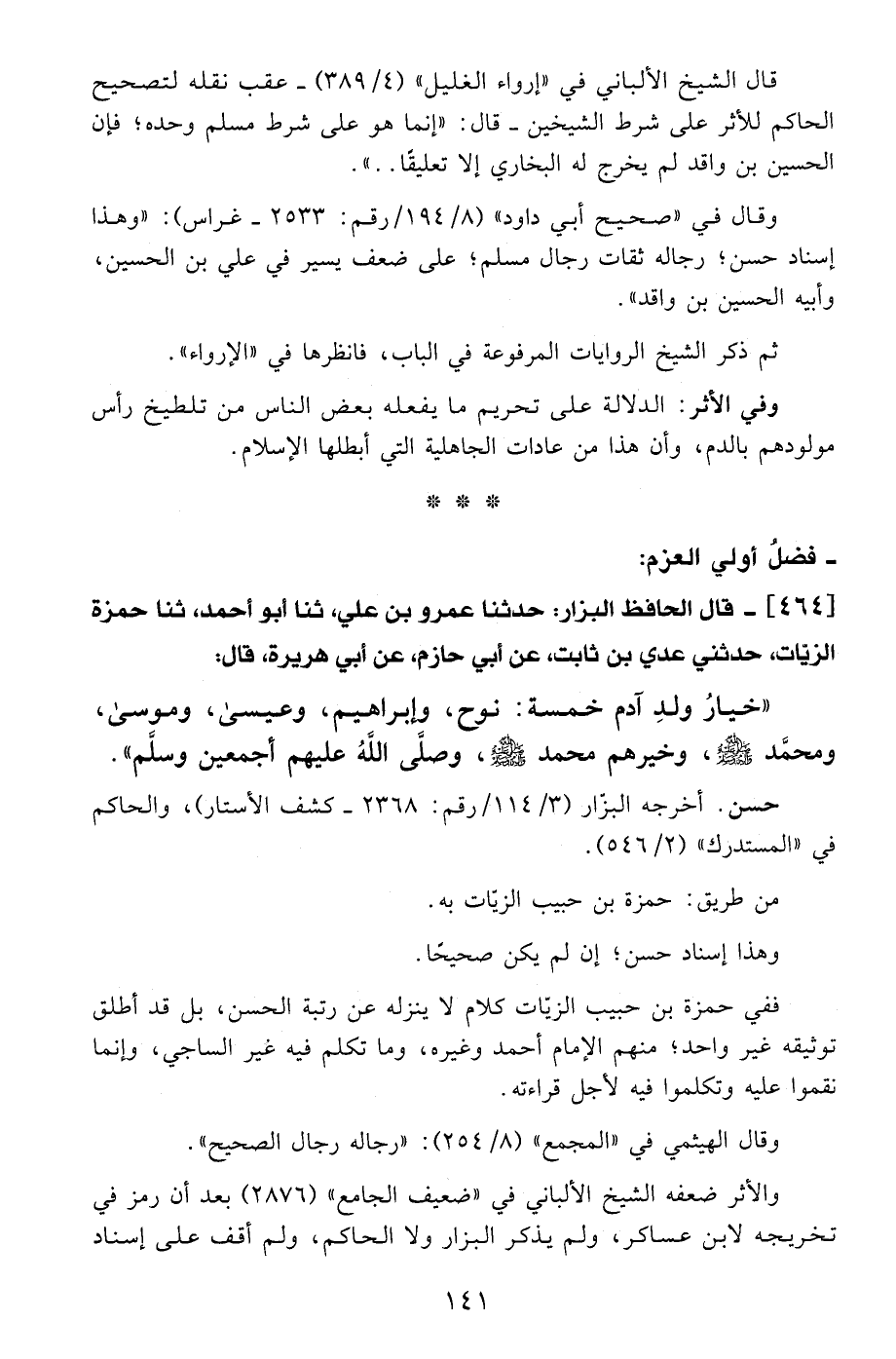 464 - قال الحافظ البزار: حدثنا عمرو بن علي، ثنا أبو أحمد، ثنا حمزة الزيّات، حدثني عدي بن ثابت، عن أبي حازم، عن أبي هريرة، قال: