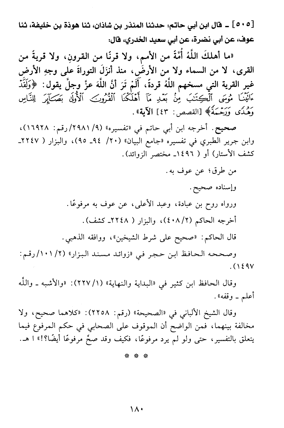 505 - قال ابن أبي حاتم: حدثنا المنذر بن شاذان، ثنا هوذة بن خليفة، ثنا عوف، عن أبي نضرة، عن أبي سعيد الخدري، قال: