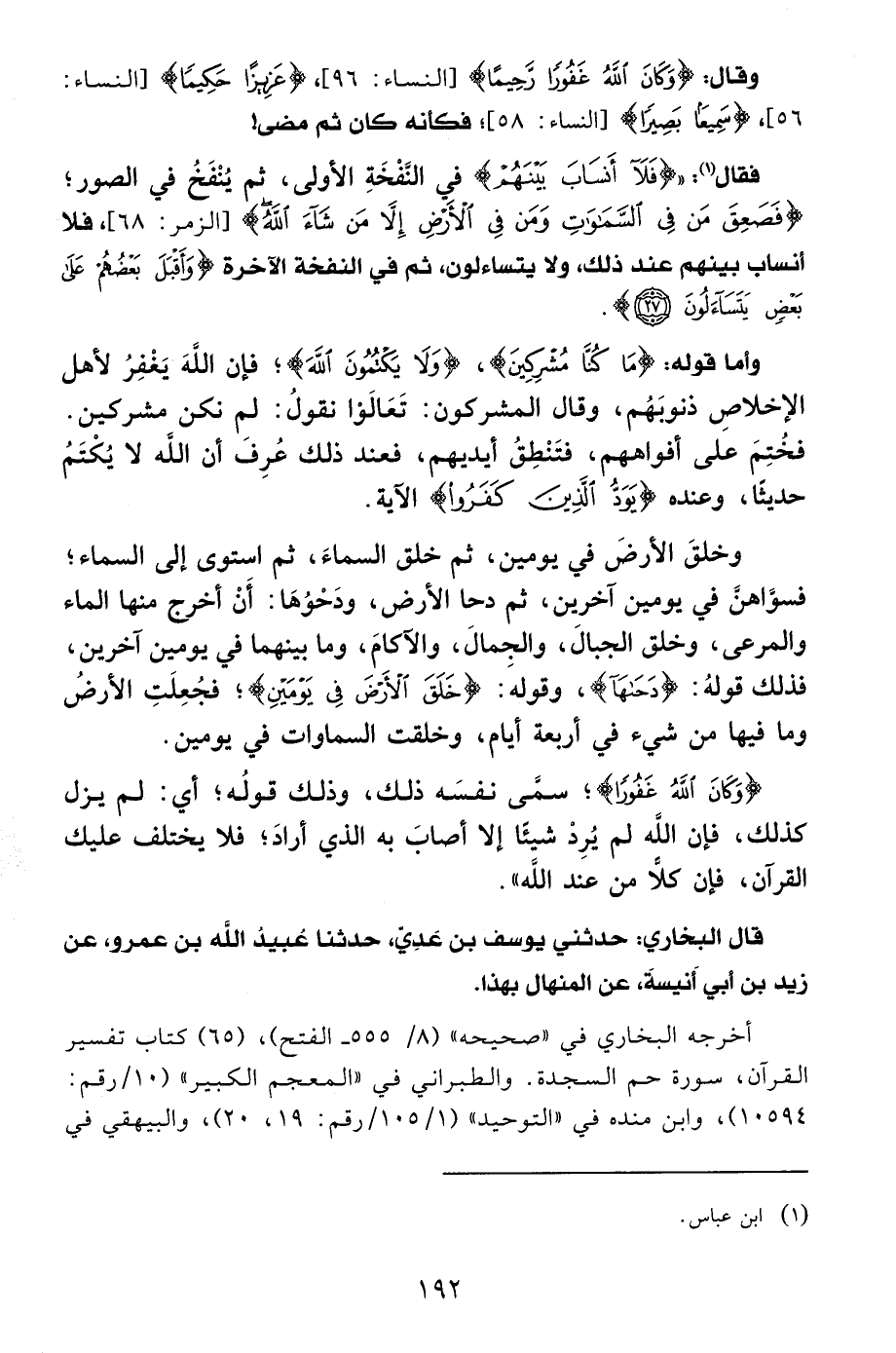 أخرجه البخاري في "صحيحه" (8/ 555 - الفتح)، (65) كتاب تفسير القرآن، سورة حم السجدة. والطبراني في "المعجم الكبير" (10/ رقم: 10594)، وابن منده في "التوحيد" (1/ 105/ رقم: 19، 20)، والبيهقي في