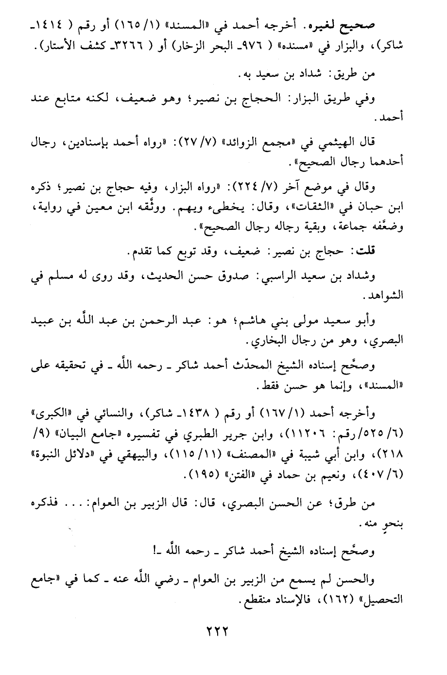 وصحَّح إسناده الشيخ أحمد شاكر -رَحِمَهُ اللهُ-!