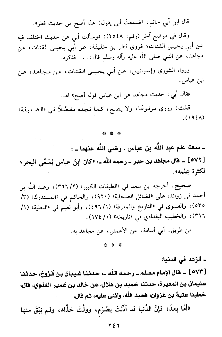 5721،- قال مجاهد بن جبر -رَحِمَهُ اللهُ-: "كان ابنُ عباس يُسَمَّى البحر؛ لكثرة عِلمه".