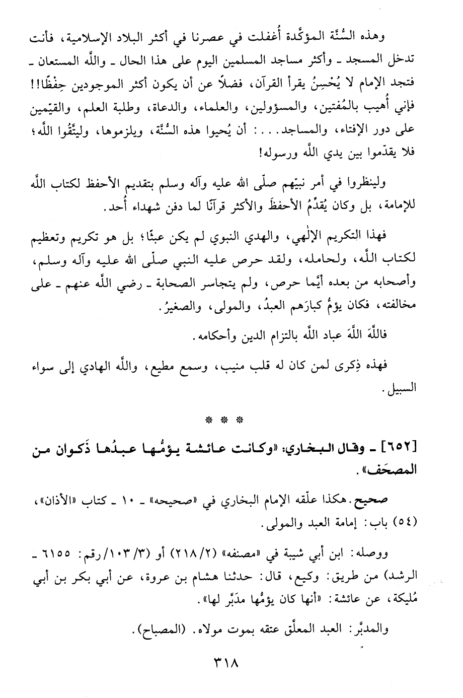 652 - وقال البخاري: "وكانت عائشة يؤمُّها عبدُها ذَكوان من المصحَف".