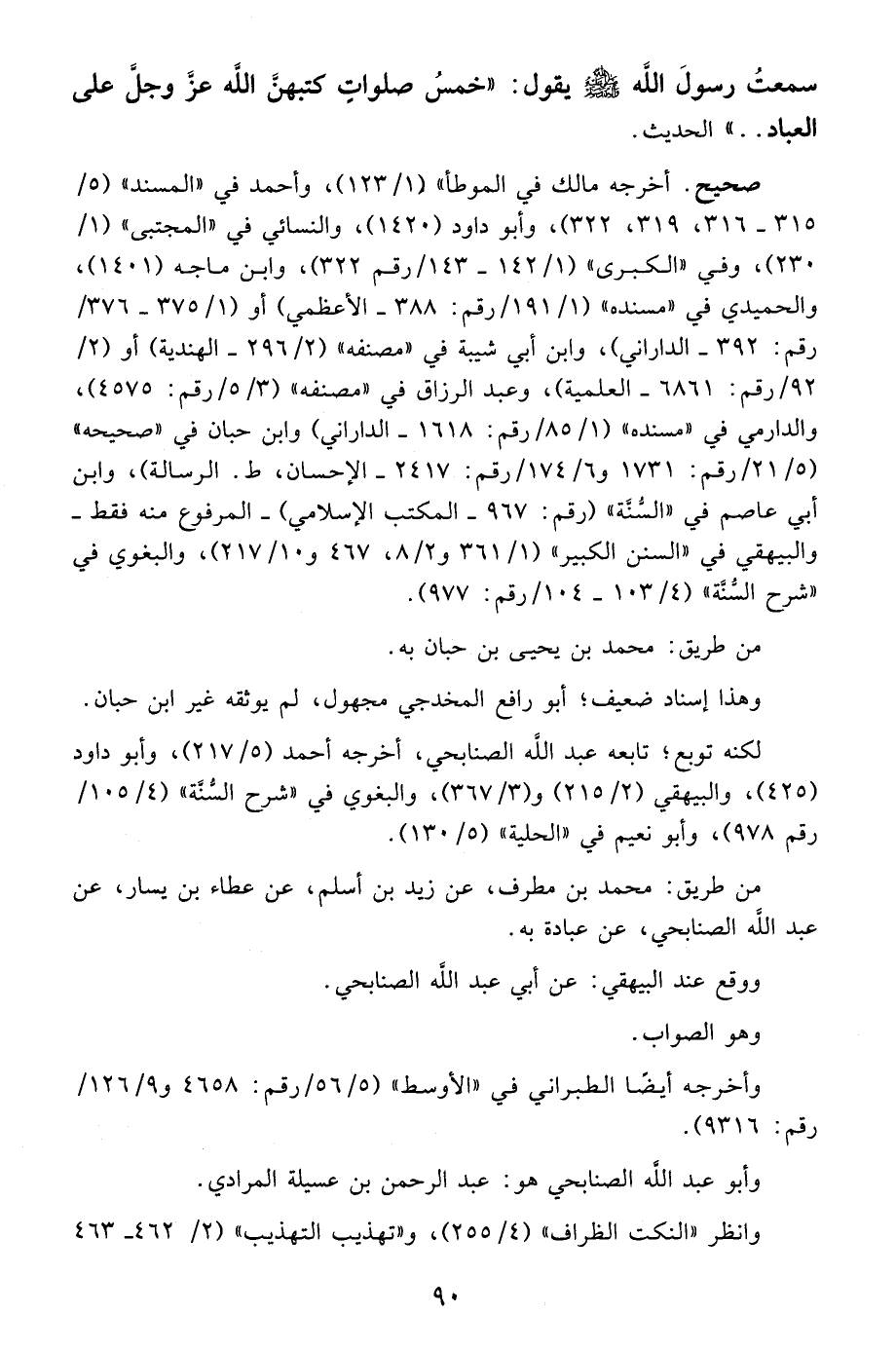 صحيح. أخرجه مالك في الموطأ" (1/ 123)، وأحمد في "المسند" (5/ 315 - 316، 319، 322)، وأبو داود (1420)، والنسائي فى "المجتبى" (1/ 230)، وفي "الكبرى" (1/ 142 - 143/ رقم 322)، وابن ماجه (1401)، والحميدي في "مسنده" (1/ 191/ رقم: 388 - الأعظمي) أو (1/ 375 - 376/ رقم: 392 - الداراني)، وابن أبي شيبة في "مصنفه" (2/ 296 - الهندية) أو (2/ 92/ رقم: 6861 - العلمية)، وعبد الرزاق في "مصنفه" (3/ 5/ رقم: 4575)، والدارمي في "مسنده" (1/ 85/ رقم: 1618 - الداراني) وابن حبان في "صحيحه" (5/ 21/ رقم: 1731 و 6/ 174/ رقم: 2417 - الإحسان، ط. الرسالة)، وابن أبي عاصم في "السُّنَّة" (رقم: 967 - المكتب الإسلامي) -المرفوع منه فقط- والبيهقي في "السنن الكبير" (1/ 361 و 2/ 8، 467 و 10/ 217)، والبغوي في "شرح السُّنَّة" (4/ 103 - 104/ رقم: 977).