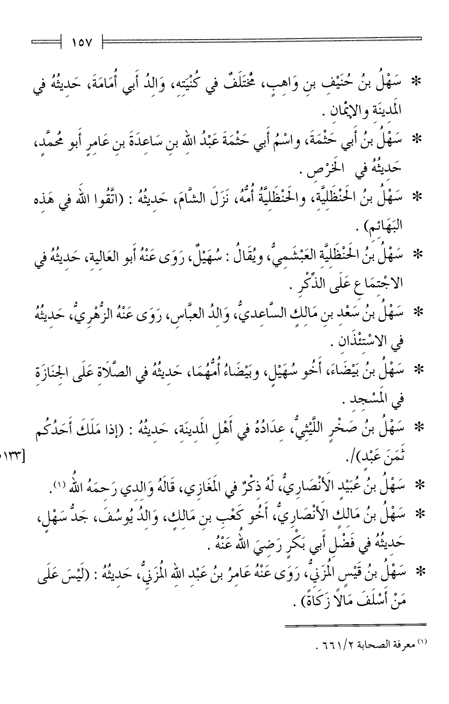 * سَهْلُ بنُ حُنَيْفِ بنِ وَاهِبٍ، مُخْتَلَفٌ في كُنْيَتِهِ، وَالِدُ أَبي أُمَامَةَ، حَدِيثُهُ في المَدِينَةِ والإيمانِ.
