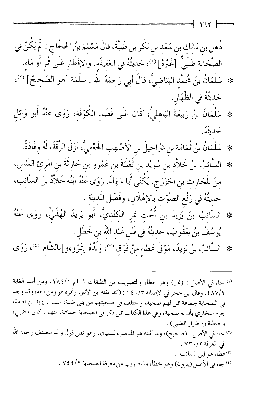(¬1) جاء في الأصل: (غير) وهو خطأ، والتصويب من الطبقات لمسلم 1/ 184، ومن أسد الغابة 2/ 487، وقال ابن حجر في الإصابة 3/ 140: (كذا نقله ابن الأثير، وأقره هو ومن تبعه، وقد وجد في الصحابة جماعة ممن لهم صحبة، واختلف في صحبتهم من بني ضبة، منهم: يزيد بن نعامة، جزم البخاري بأن له صحبة، وفي هذا الكتاب ممن ذكر في الصحابة جماعة، منهم: كدير الضبي، وحنظلة بن ضرار الضبي).