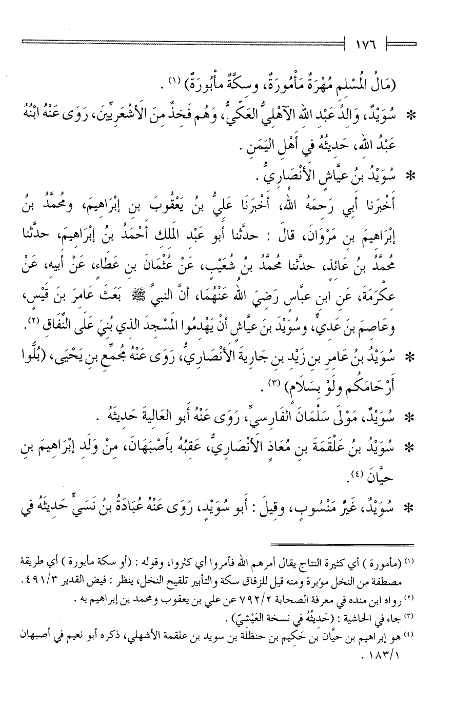 * سُوَيْدُ بنُ عَلْقَمَةَ بنِ مُعَاذٍ الأَنْصَارِيُّ، عَقِبُهُ بأَصْبَهَانَ، مِنْ وَلَدِ إبْرَاهِيمَ بنِ حيَّانَ (¬4).