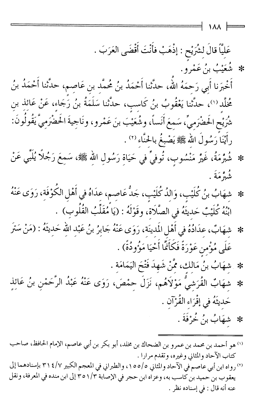 (¬1) هو أحمد بن محمَّد بن عمرو بن الضحاك بن مخلد، أبو بكر بن أبي عاصم، الإِمام الحافظ، صاحب كتاب الآحاد والمثاني وغيره، وتقدم مرارا.