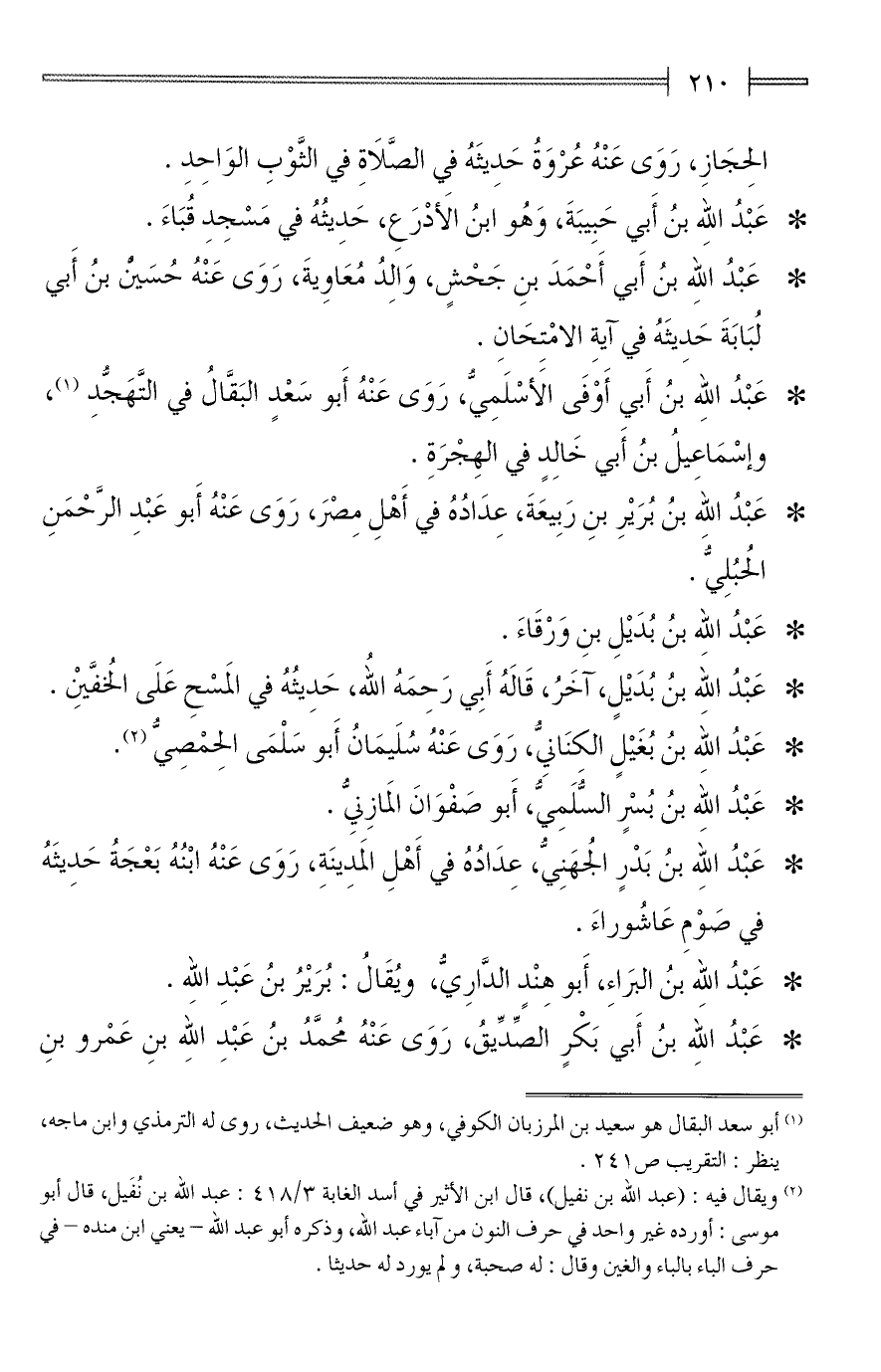 * عَبْدُ الله بنُ أَبي أَوْفَى الأَسْلَمِيُّ، رَوَى عَنْهُ أَبو سَعْدٍ البَقَّالُ في التَّهَجُّدِ (¬1)، وإسْمَاعِيلُ بنُ أَبي خَالِدٍ في الهِجْرَةِ.