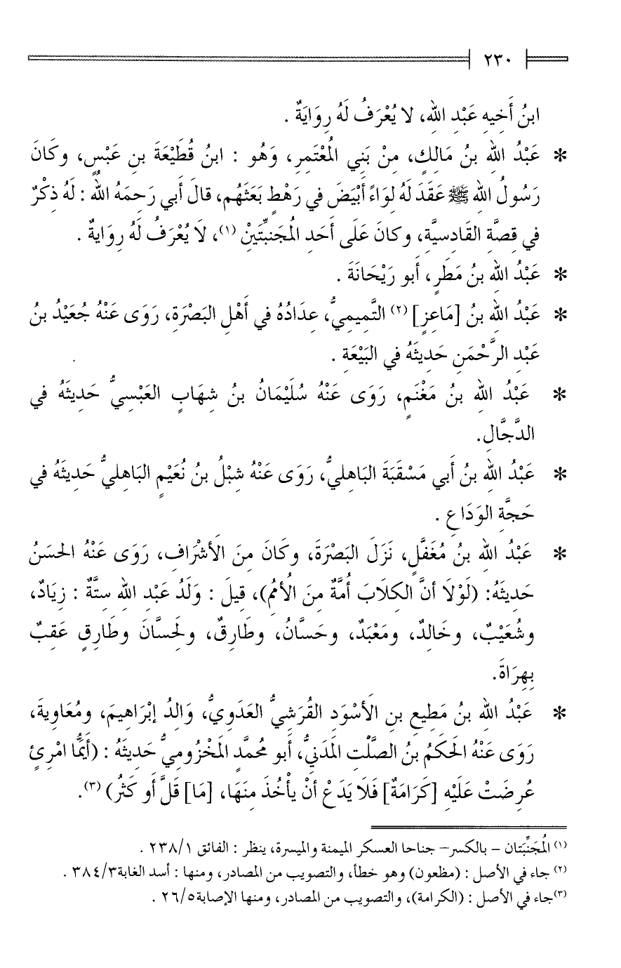 (¬3) جاء في الأصل: (الكرامة)، والتصويب من المصادر، ومنها الإصابة 5/ 26.