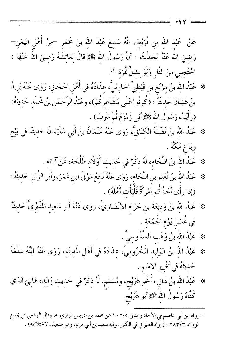 * عَبْدُ الله بنُ نُعَيْمِ بنِ النَّحّامِ، رَوَى عَنْهُ نَافِعُ مَوْلى ابنِ عُمَرَ، وأَبو الزُّبَير حَدِيثَهُ: (إذا رأَى أَحَدُكُم امْرأَةً فَلْيَأْتِ أَهْلَهُ).