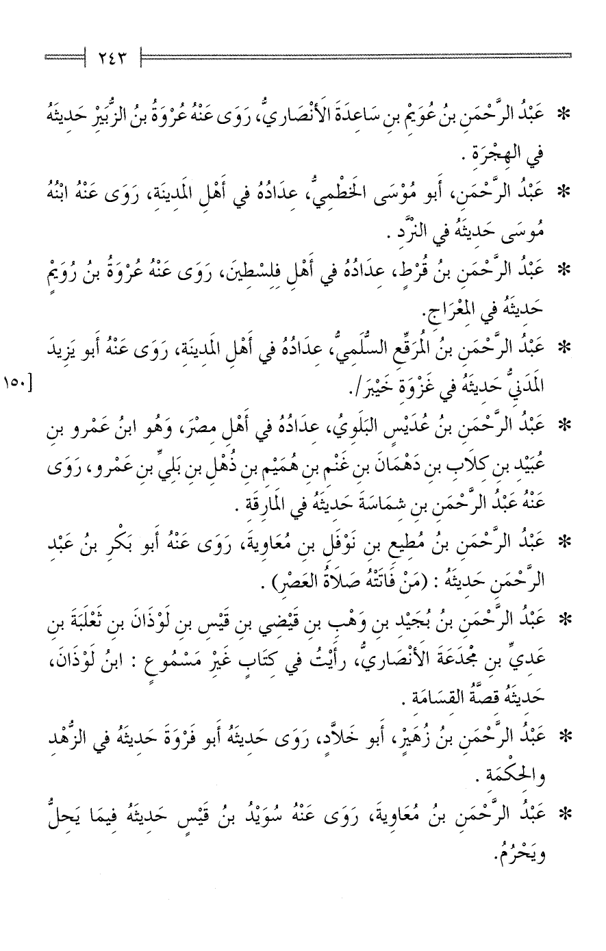 * عَبْدُ الرَّحْمَنِ بنُ زُهَيرٍ، أَبو خَلَّاد، رَوَى حَديثَهُ أَبو فَرْوَةَ حَديثَهُ في الزُّهْدِ والحِكْمَةِ.