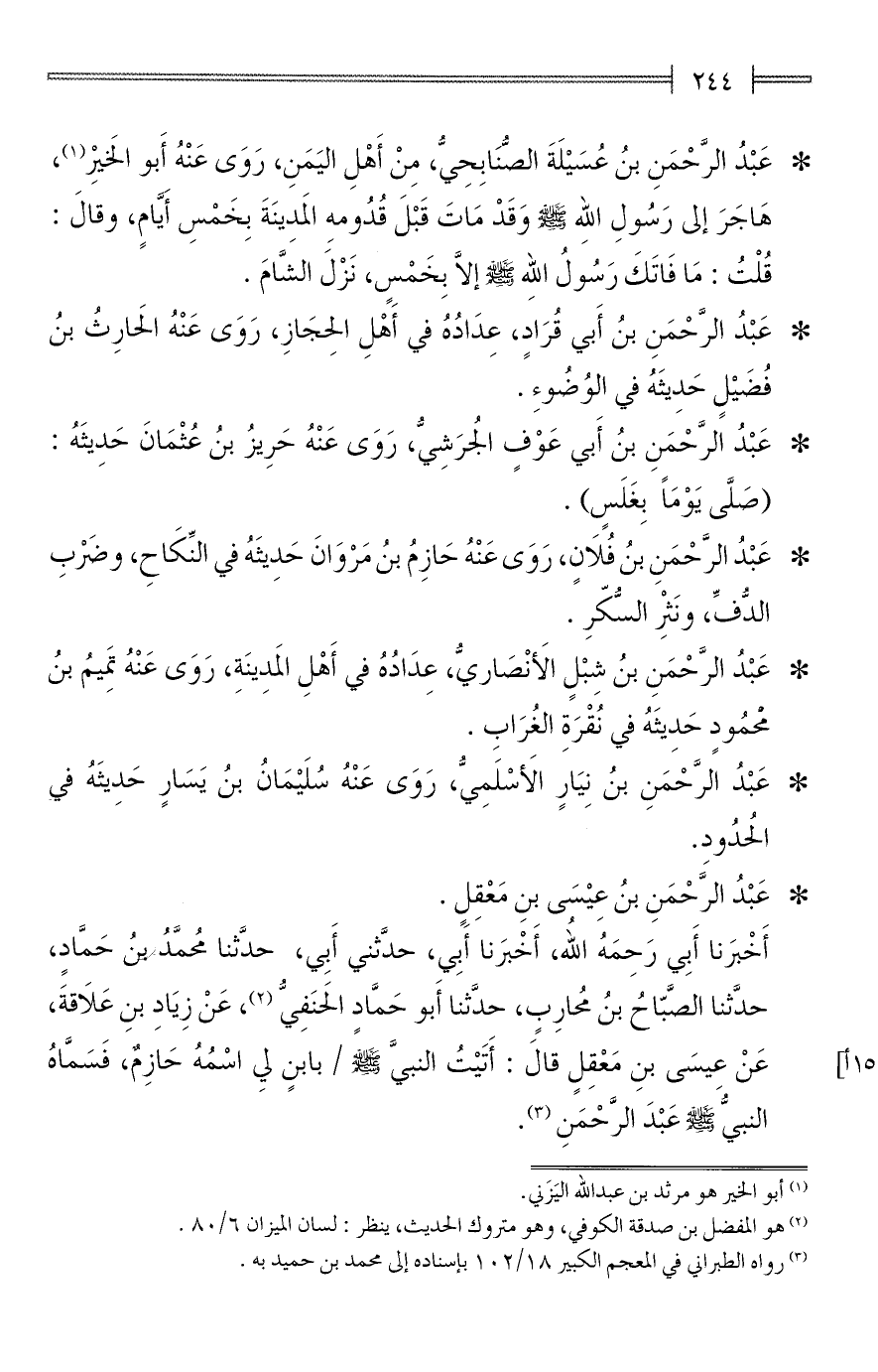 أَخْبَرنا أَبِي رَحِمَهُ الله، أَخْبَرنا أَبِي، حدَّثني أَبِي، حدَّثنا مُحمَّدُ بنُ حَمَّادٍ، حدَّثنا الصَّبّاحُ بنُ مُحارِبٍ، حدَّثنا أَبو حَمَّادٍ الحَنَفِيُّ (¬2)، عَنْ زِيَادِ بنِ عَلَاقةَ، عَنْ عِيسَى بنِ مَعْقِلٍ قالَ: أتَيْتُ النبيَّ - صلى الله عليه وسلم - بابنٍ لي اسْمُهُ حَازِمٌ، فَسَمَّاهُ النبيُّ - صلى الله عليه وسلم - عَبْدَ الرَّحْمَنِ (¬3).