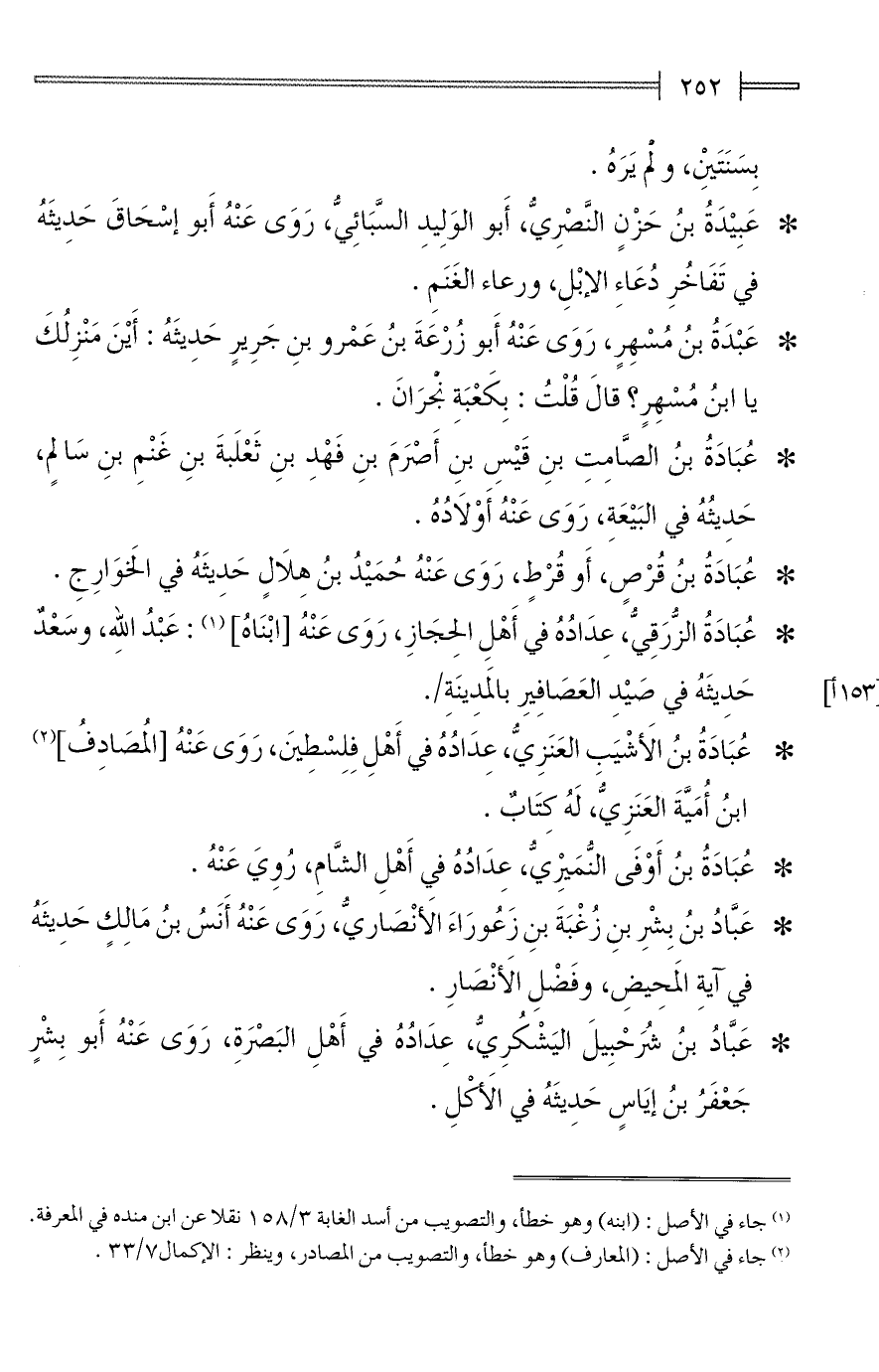 * عُبَادَةُ بنُ الأَشْيَبِ العَنَزِيُّ، عِدَادُهُ في أَهْلِ فِلِسْطِينَ، رَوَى عَنْهُ [المُصَادِفُ] (¬2) ابنُ أُمَيَّةَ العَنَزِيُّ، لَهُ كِتَابٌ.