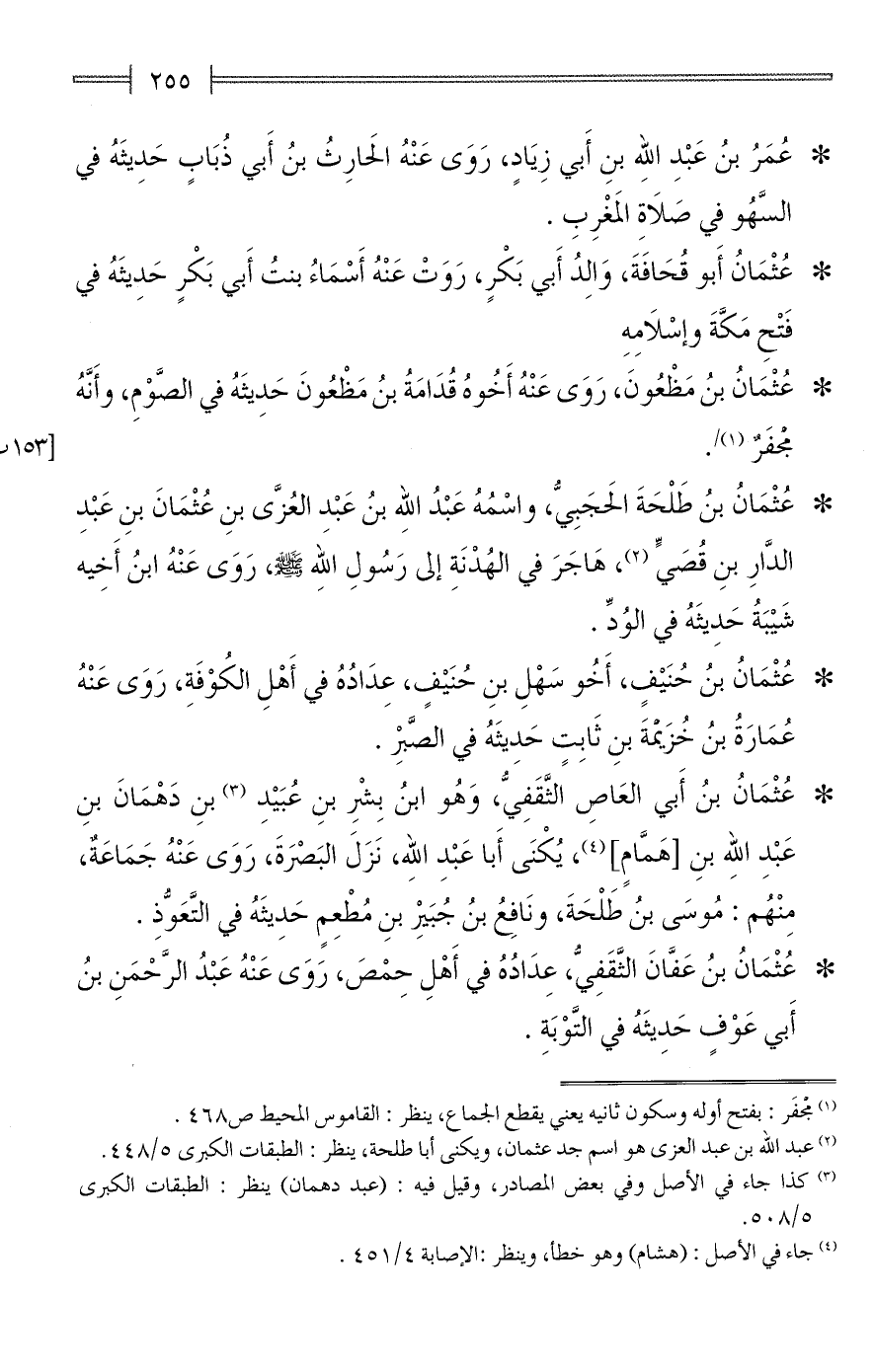 (¬2) عبد الله بن عبد العزى هو اسم جد عثمان، ويكنى أبا طلحة، ينظر: الطبقات الكبرى 5/ 448.