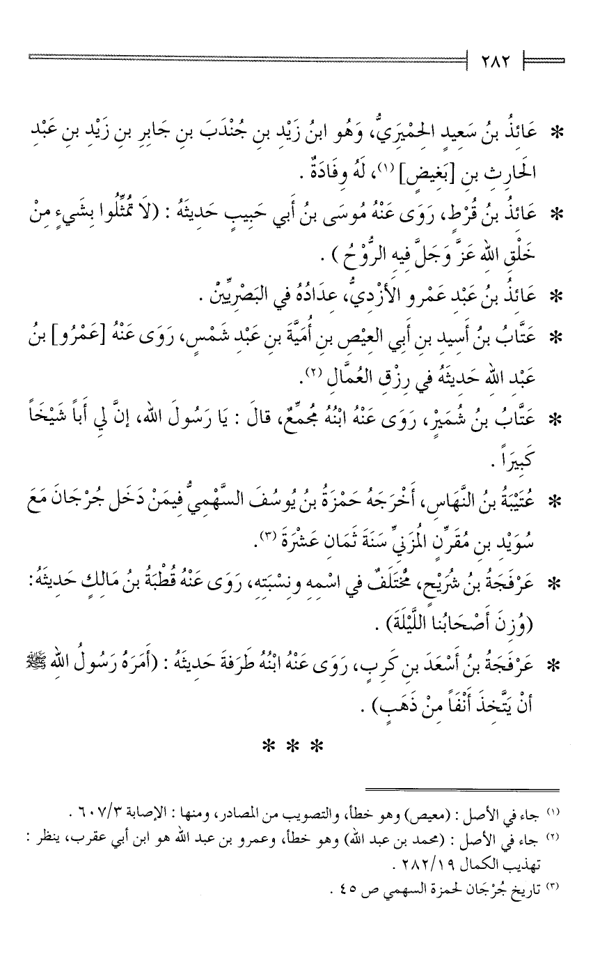 * عُتَيْبَةُ بنُ النَّهَاسِ، أَخْرَجَهُ حَمْزَةُ بنُ يُوسُفَ السَّهْمِيُّ فِيمَنْ دَخَل جُرْجَانَ مَعَ سُوَيْدِ بنِ مُقَرِّنٍ المُزَنِيِّ سَنَةَ ثَمَانِ عَشْرَةَ (¬3).