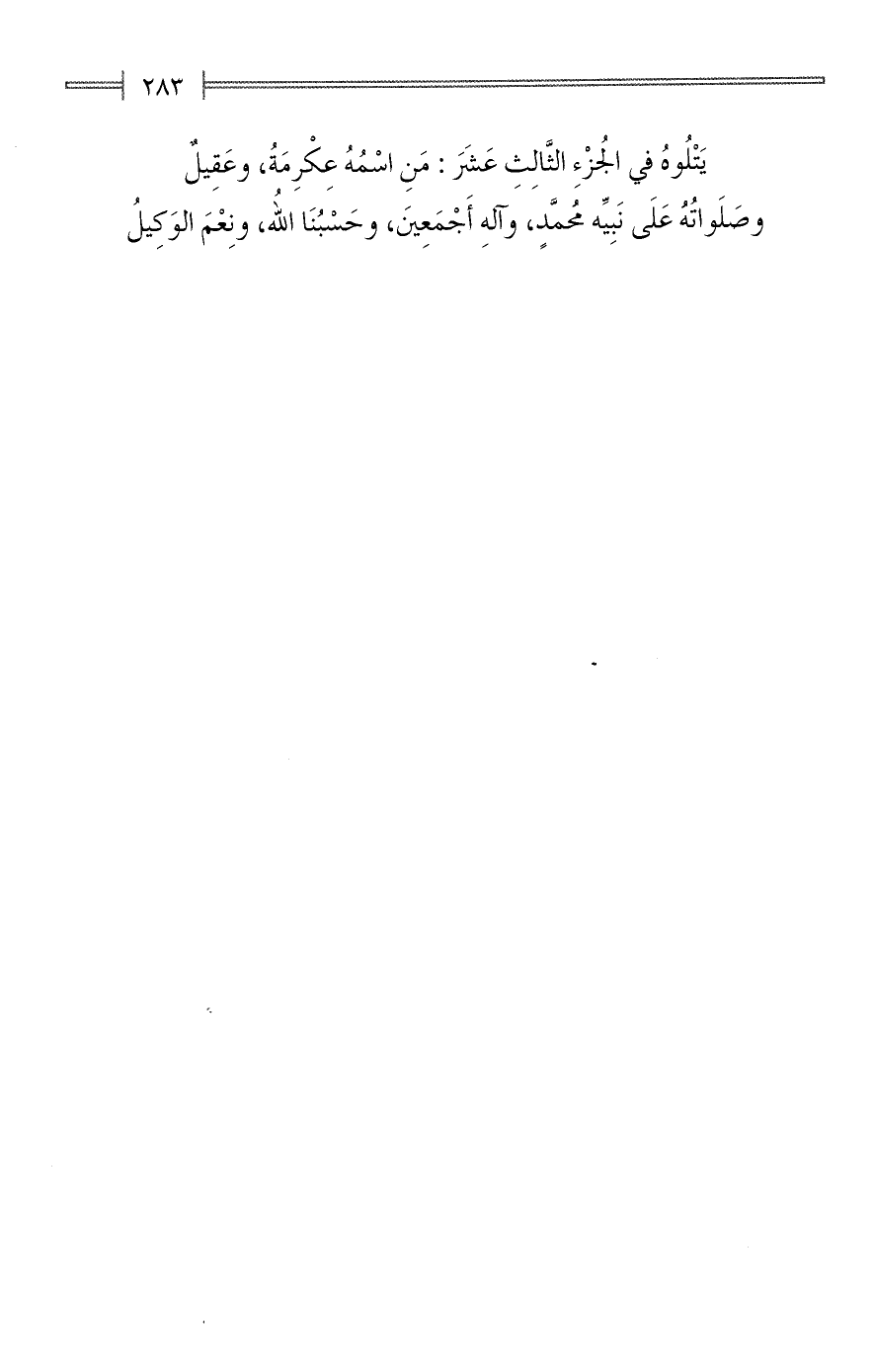 يَتْلُوهُ في الجُزْءِ الثَّالِثِ عَشَرَ: مَنِ اسْمُهُ عِكْرِمَةُ، وعَقِيلٌ وصَلَواتُهُ عَلَى نَبِيِّه مُحمَّدٍ، وآلهِ أَجْمَعِينَ، وحَسْبُنَا الله، ونِعْمَ الوَكِيلُ