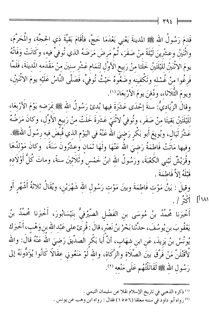 (¬2) رواه أبو داود في سننه معلقا (1556) فقال: رواه ابن وهب عن يونس.