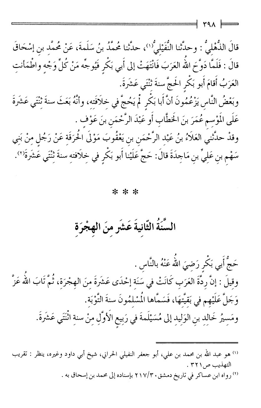 ومَسِيرُ خَالِدِ بنِ الوَلِيدِ إلى مُسَيْلَمةَ في رَبِيعٍ الأَوَّلِ مِنْ سنةِ اثْنَتَى عَشَرةَ.