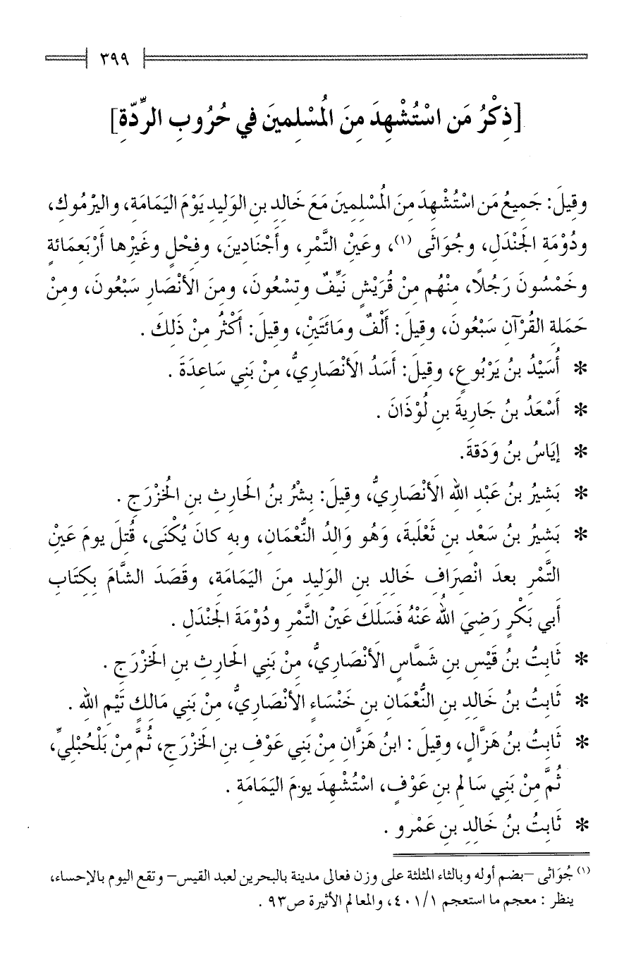 [ذِكْرُ مَن استُشْهِدَ مِنَ المُسْلِمينَ في حُرُوبِ الرِّدّةِ]