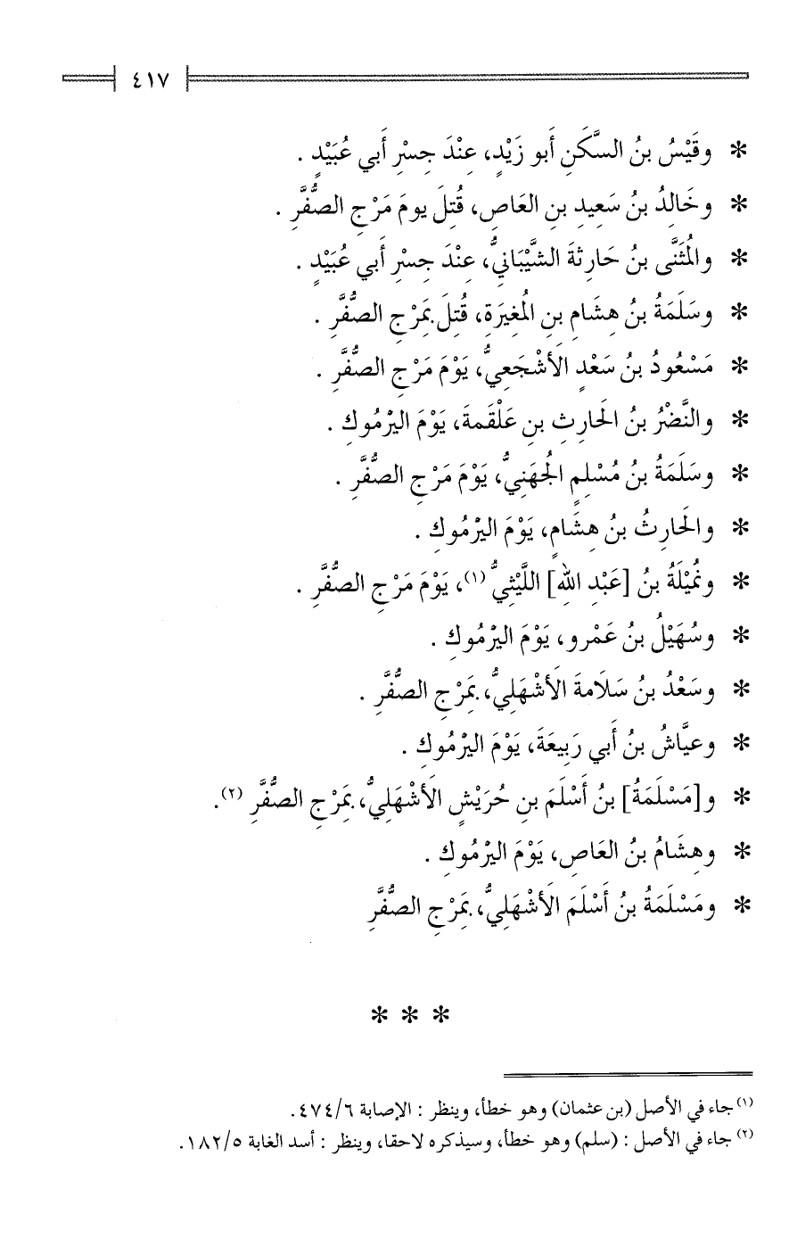 * ومَسْلَمَةُ بنُ أَسْلَمَ الأَشْهَلِيُّ، بِمَرْجِ الصُّفَّرِ.