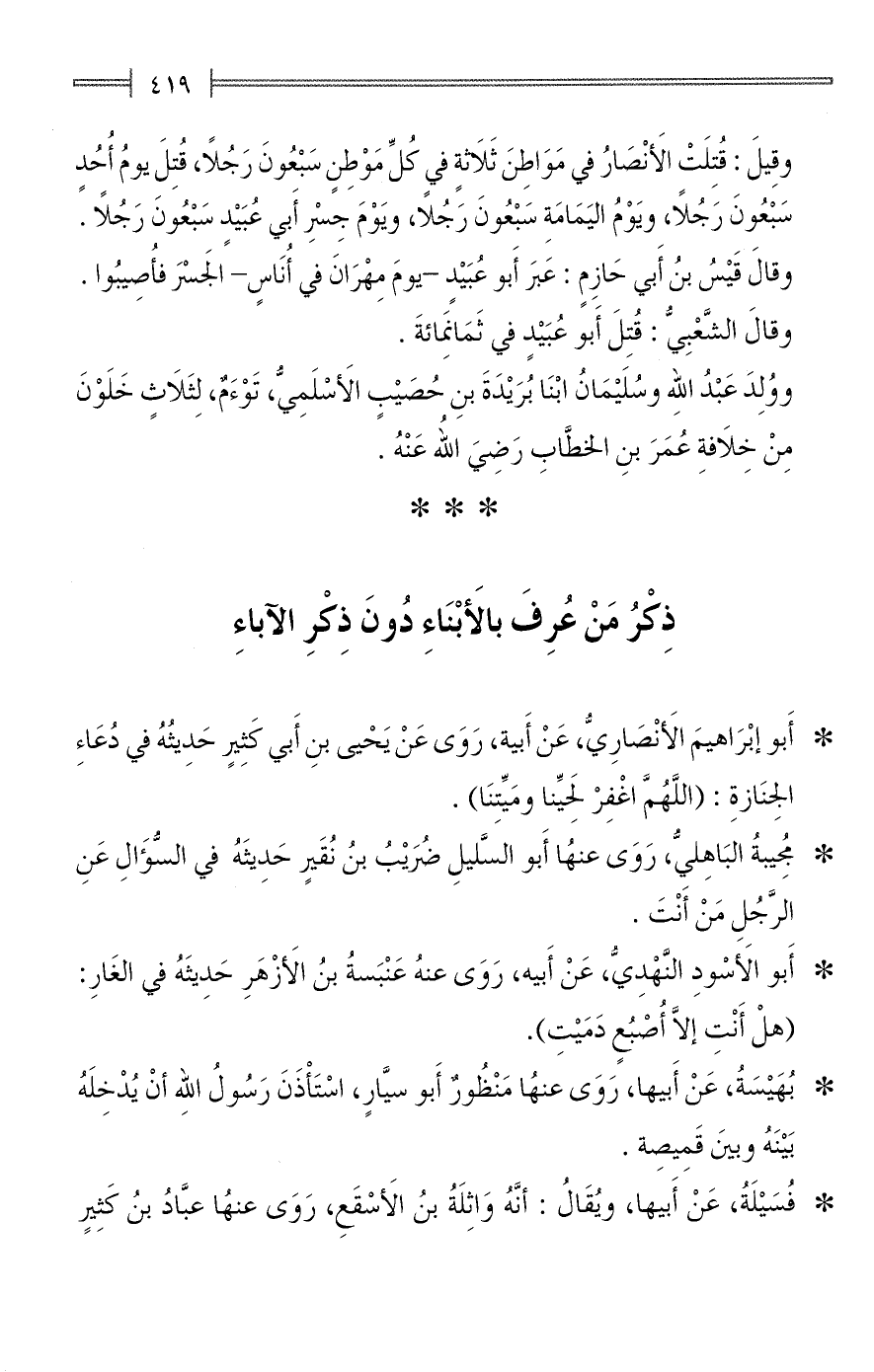 ذِكْرُ مَنْ عُرِفَ بالأَبْنَاءِ دُونَ ذِكْرِ الآباءِ