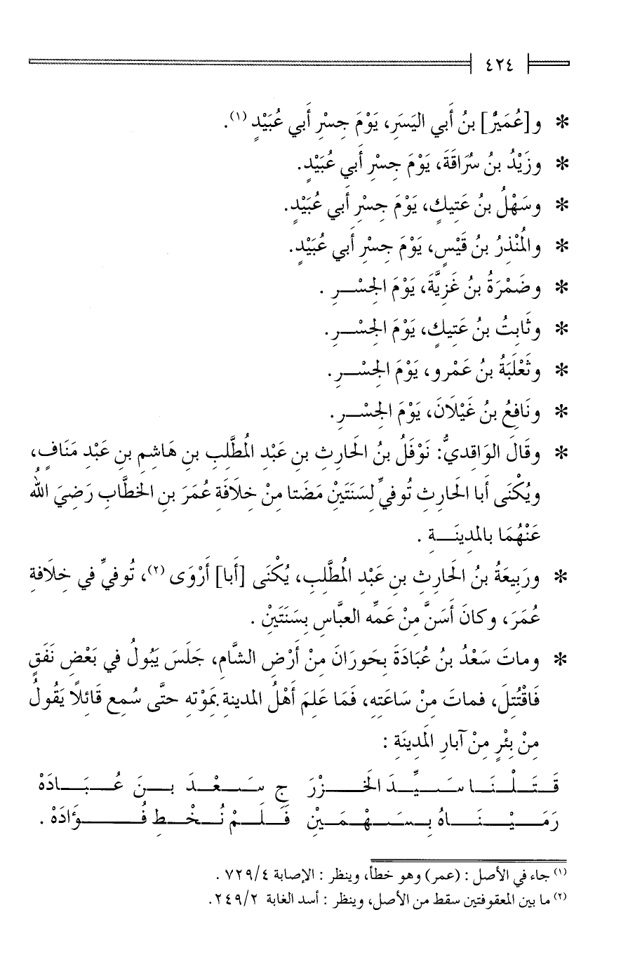 * وزَيْدُ بنُ سُرَاقَةَ، يَوْمَ جِسرِ أَبي عُبَيْدٍ.