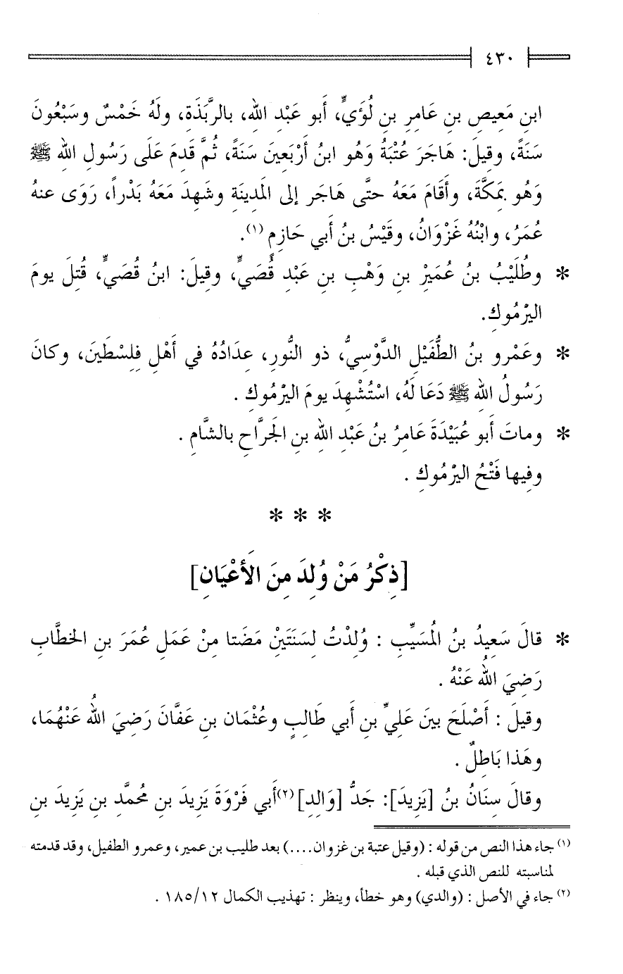 (¬1) جاء هذا النص من قوله: (وقيل عتبة بن غزوان ....) بعد طليب بن عمير، وعمرو الطفيل، وقد قدمته لمناسبته للنص الذي قبله.