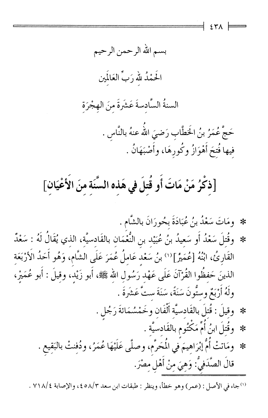 (¬1) جاء في الأصل: (عمر) وهو خطأ، وينظر: طبقات ابن سعد 3/ 458، والإصابة 4/ 718.
