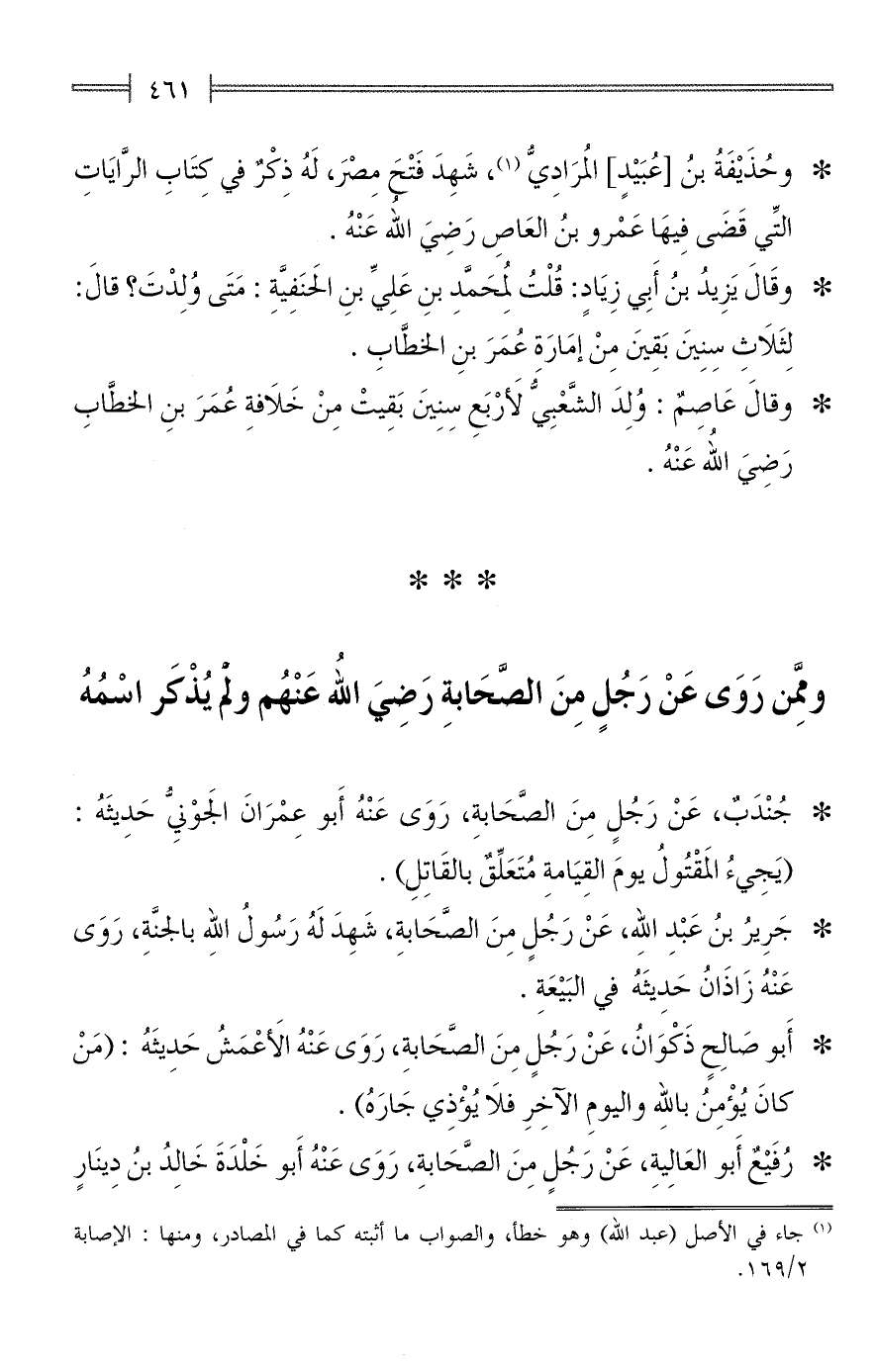 ومِمَّن رَوَى عَنْ رَجُلٍ مِنَ الصَّحَابةِ رَضِيَ اللهُ عَنْهُم ولم يُذْكَر اسمُهُ