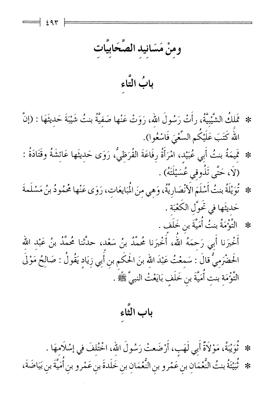 ومِنْ مَسَانِيدِ الصَّحَابِيَّاتِ بابُ التَّاءِ