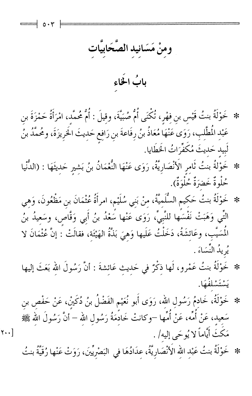 ومِنْ مَسَانِيدِ الصَّحَابِيَّاتِ بابُ الخَاءِ