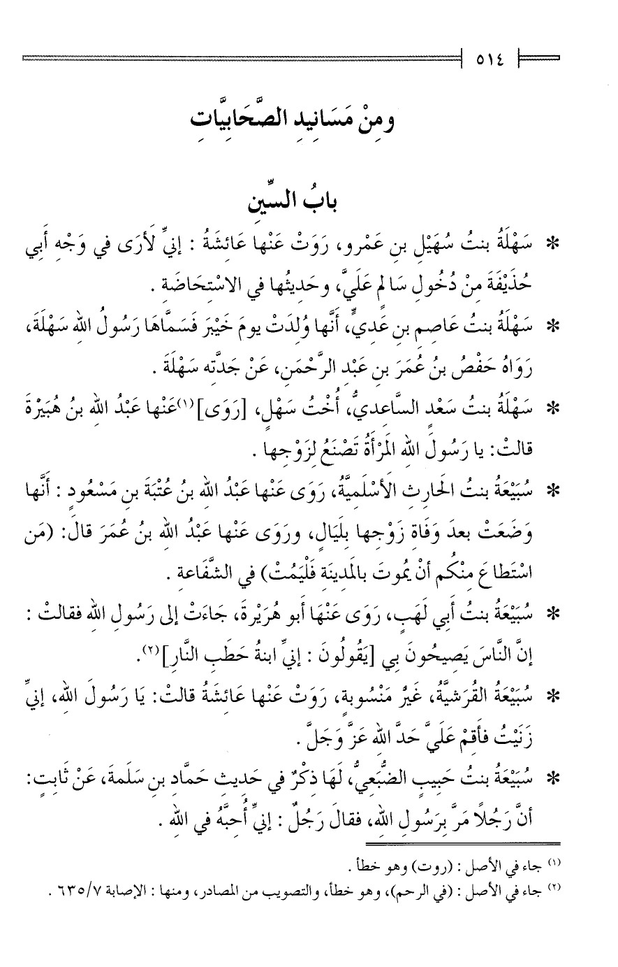 ومِنْ مَسَانِيدِ الصَّحَابِيَّاتِ بابُ السِّينِ